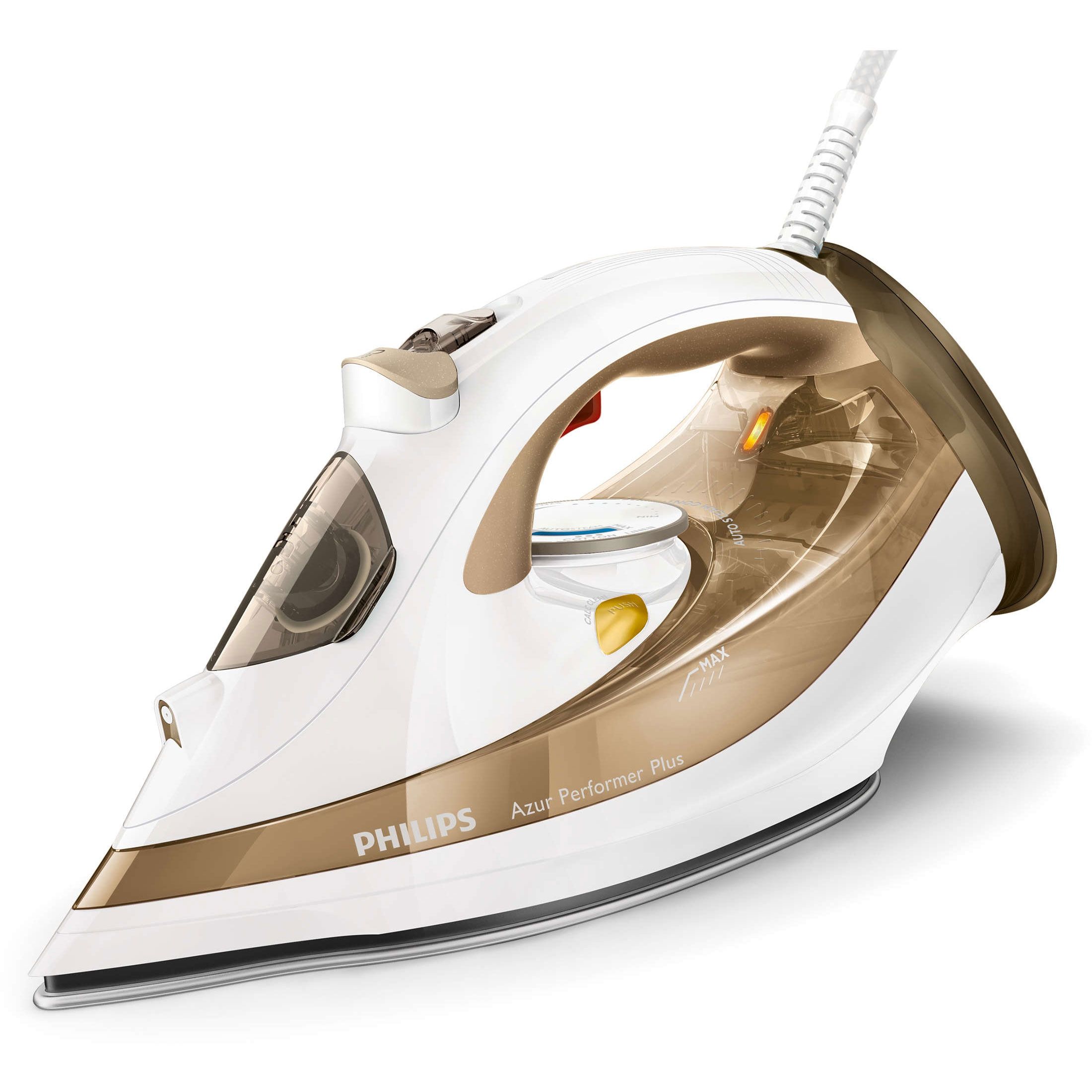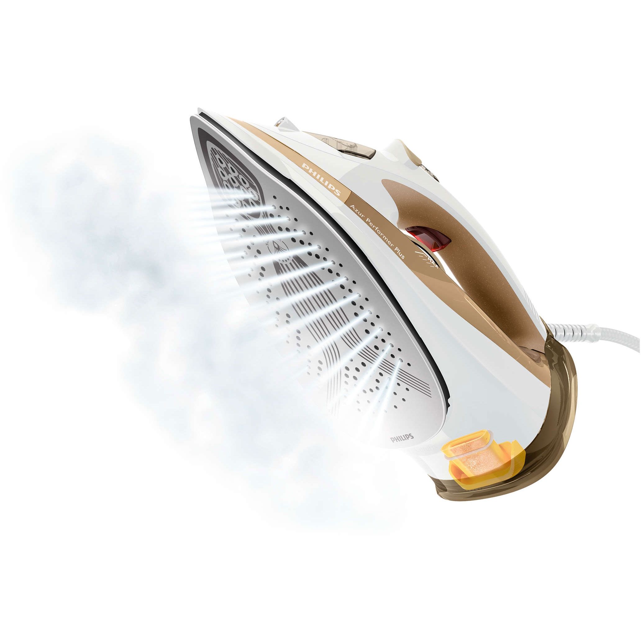 Curăţare automată pentru eliminarea eficientă a calcarului. Pe lângă rezervorul integrat pentru calcar, funcţia de curăţare automată a tălpii îndepărtează chiar şi cel mai persistent calcar. O talpă curată îmbunătăţeşte performanţa aburului şi rezultatele călcării.
