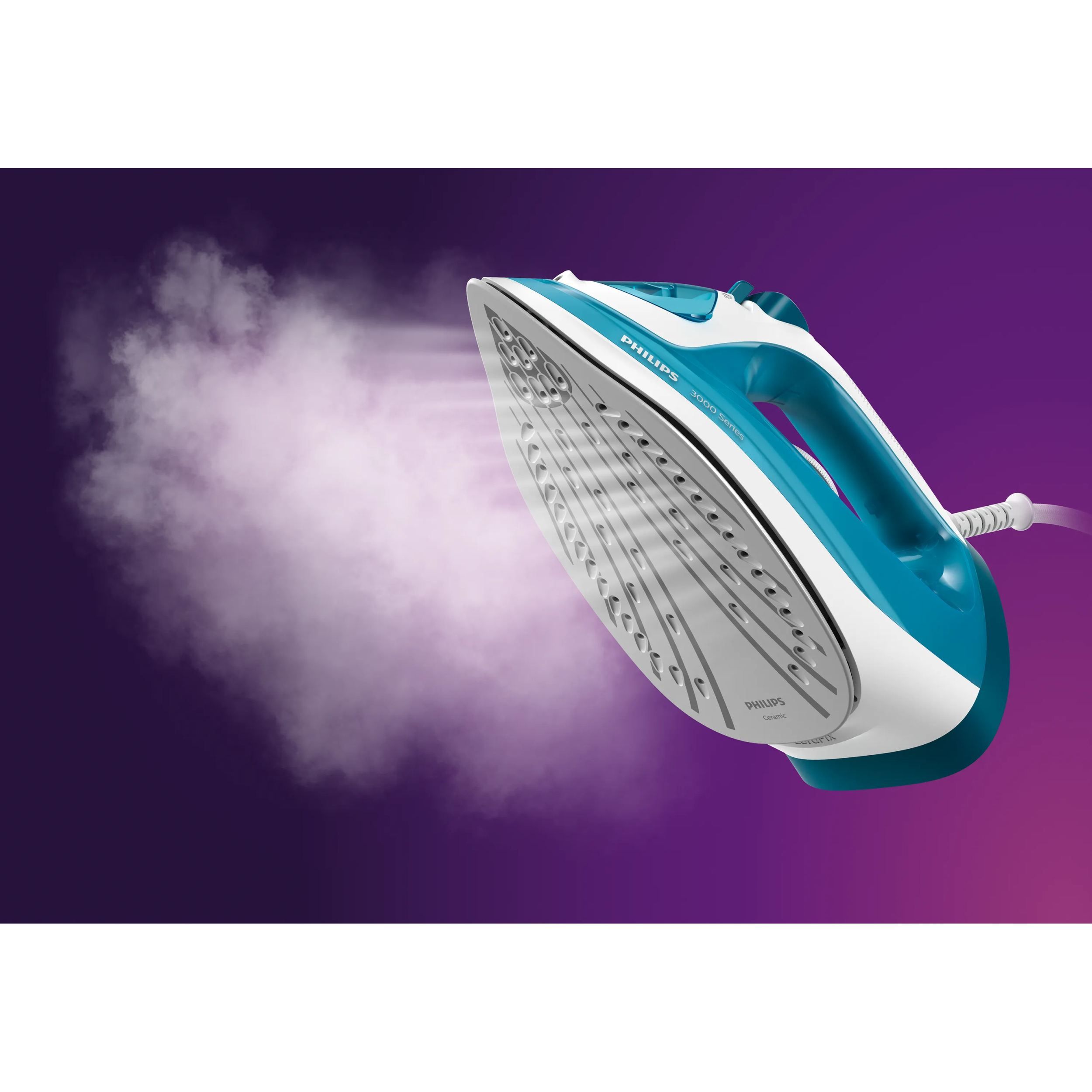 Fier de călcat cu abur Philips Seria 3000 DST3011/20, 2100W, Continuu 30g/min, Jet 140g, Rezervor 300ml, Talpă Ceramică, C1.9m, G1.27kg, Light Blue