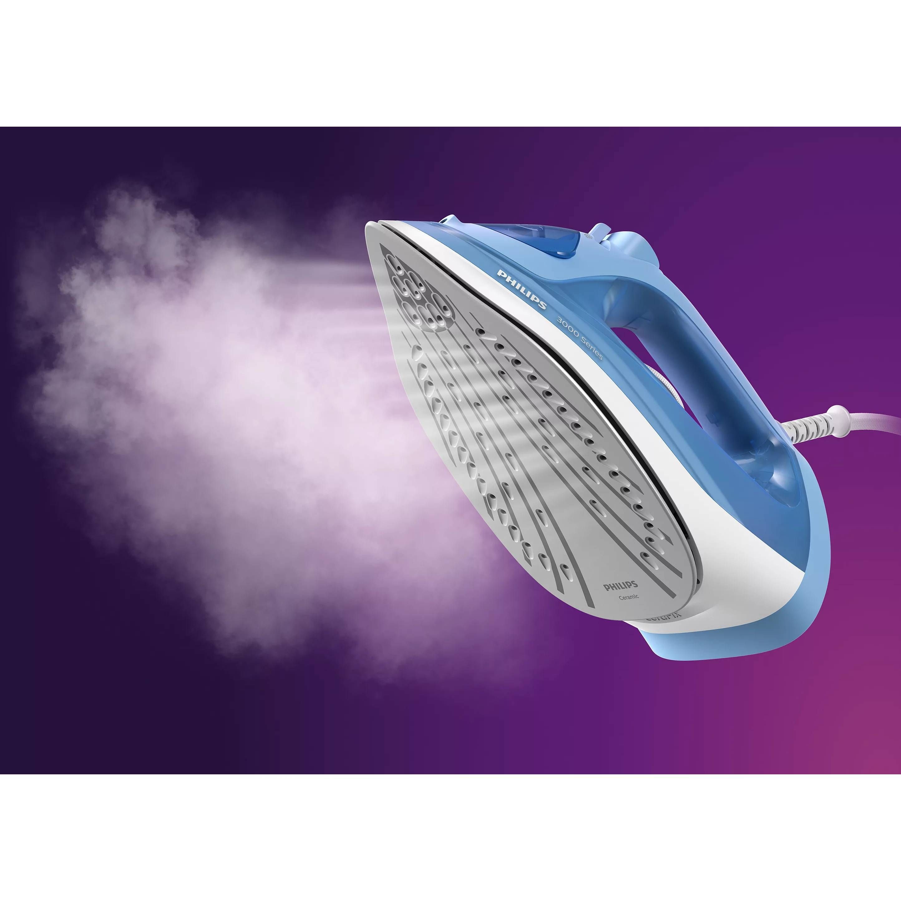 Fier de călcat cu abur Philips Seria 3000 DST3020/20, 2200W, Continuu 35g/min, Jet 160g, Rezervor 300ml, Talpă Ceramică, C1.9m, G1.27kg, Light Blue