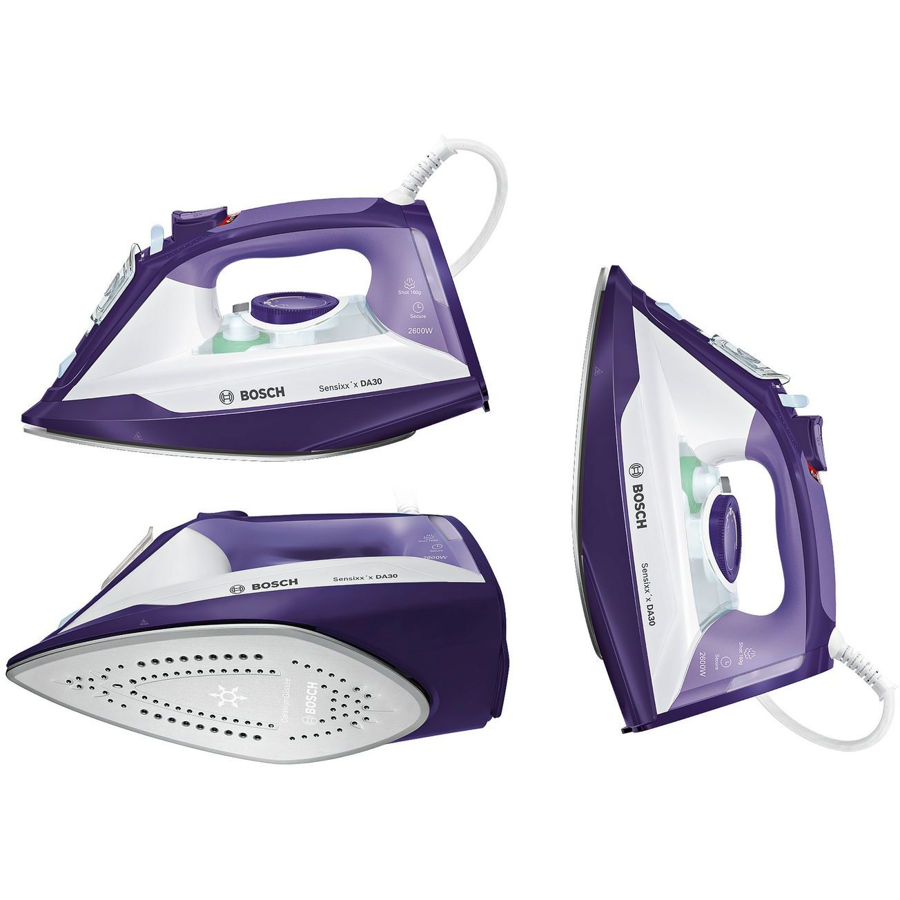 3AntiCalc - pregătit să funcționeze mai mult timp. Toate lucrurile bune vin în serii de trei - aceasta se aplică și duratei de funcționare a unui aparat de călcat. Funcția 3AntiCalc, așa cum implică și numele, este o funcție triplă ce cuprinde SelfClean, CalcnClean și un Sistem AntiCalc încorporat. Acesta previne în mod eficient acumularea depunerilor de calcar în aparat și crește în mod sigur durata de funcționare a fierului de călcat Bosch.
