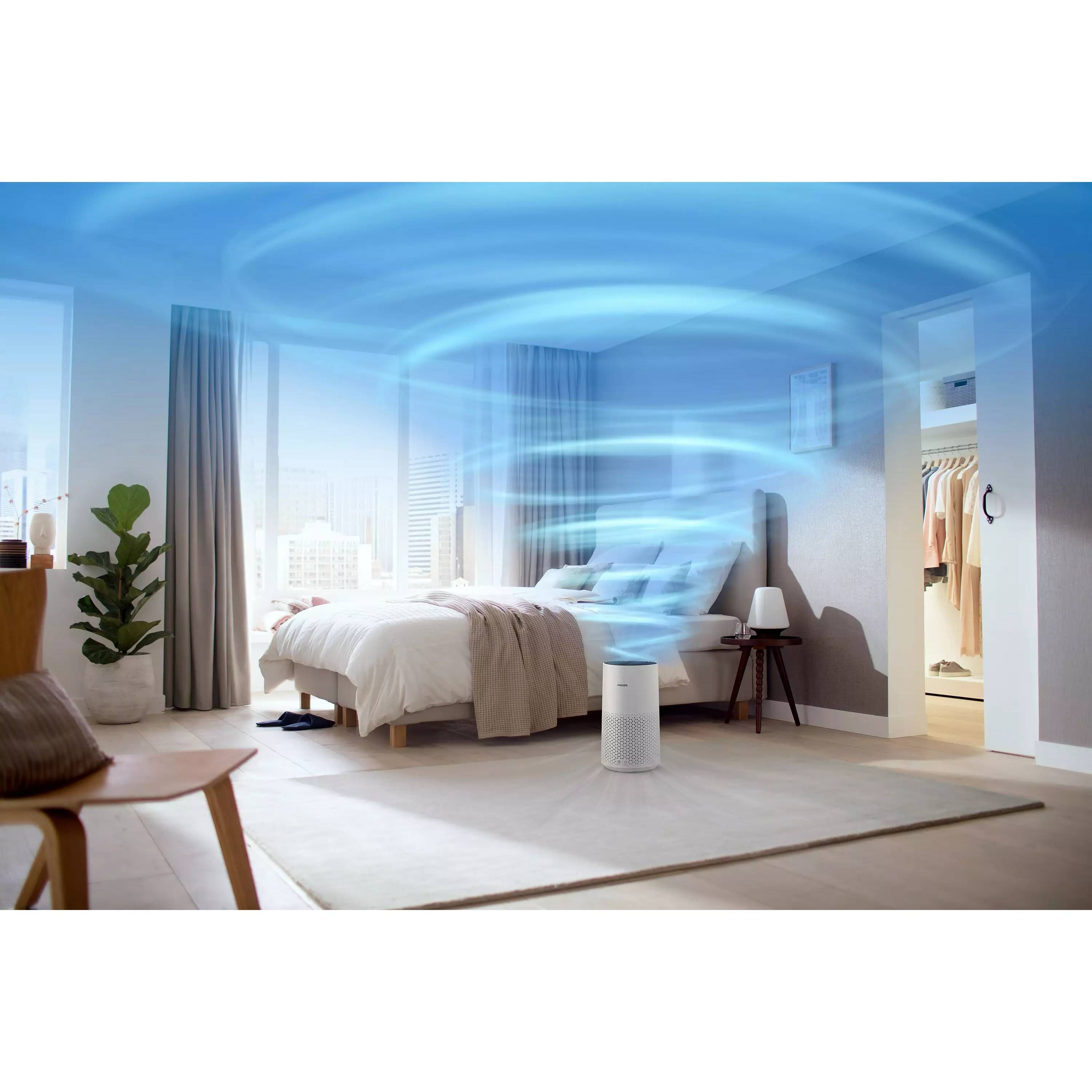Filtrarea în 3 straturi cu NanoProtect HEPA, filtru de cărbune activat și prefiltru captează 99,97% din particulele ultrafine, de până la 0,003 microni, pentru a vă proteja de bacterii, polen, praf, PM2,5, păr de animale de companie și gaze. Tehnologia NanoProtect HEPA nu numai că captează poluanții, ci îi atrage și prin încărcare electrostatică. Acest lucru curăță aerul mai repede decât cu un filtru medical HEPA H13.