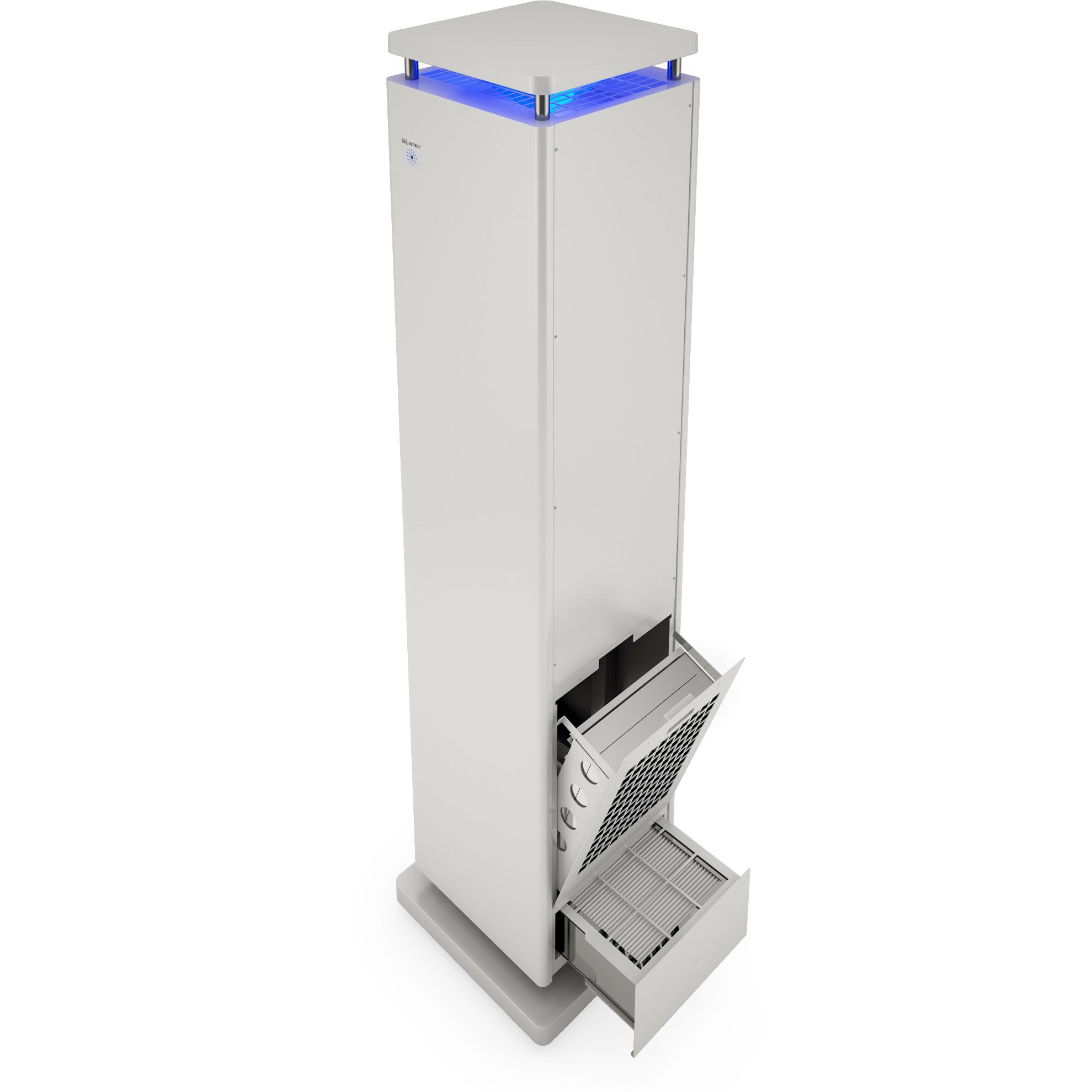 Purificator + Sterilizator de aer Radic8, modelul VK 103, recomandat pentru spații de până la 100 mp precum spitale, clinici, cabinete medicale, farmacii, maternități, coridoare, săli de mese, cantine, creșe, gradinițe, licee etc. Putere motor 280W, operare automată, senzori, flux de aer de neegalat. Acest aparat este mai mult decât un purificator, deținând tehnologia patentată VirusKiller, care poate neutraliza virușii, bacterile și noxele auto. Specificații tehnice: Recomandat pentru încăperi de până la 100mp. Reactor de sterilizare – 8 lămpi UVC și 70 de filtre TiO2 cromate. Filtru Hepa nano argint. Filtru cu carbon activ. Prefiltru lavabil. Dimensiuni: 1570x320x320 mm. Consum maxim: 350W. Instalare: suprafață plană. Greutate: 42 kg. Consumabile: filtru HEPA 75mm, filtru carbon 20mm.