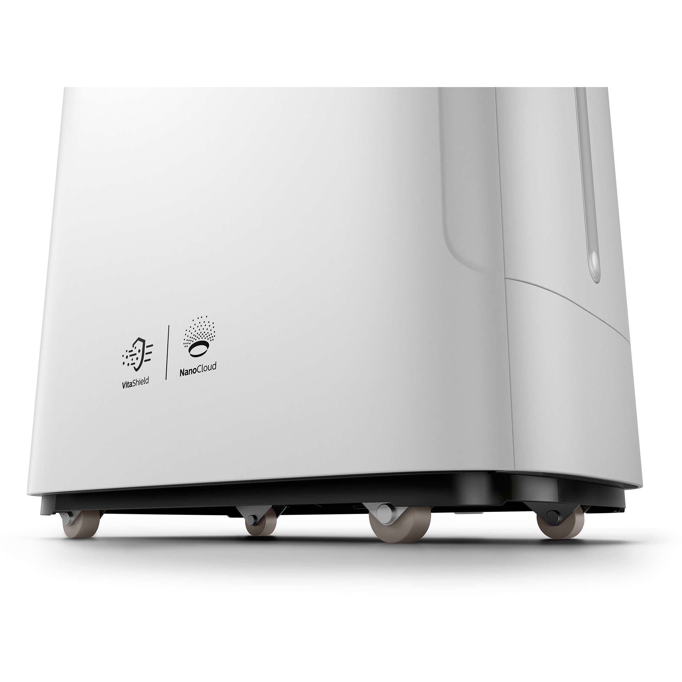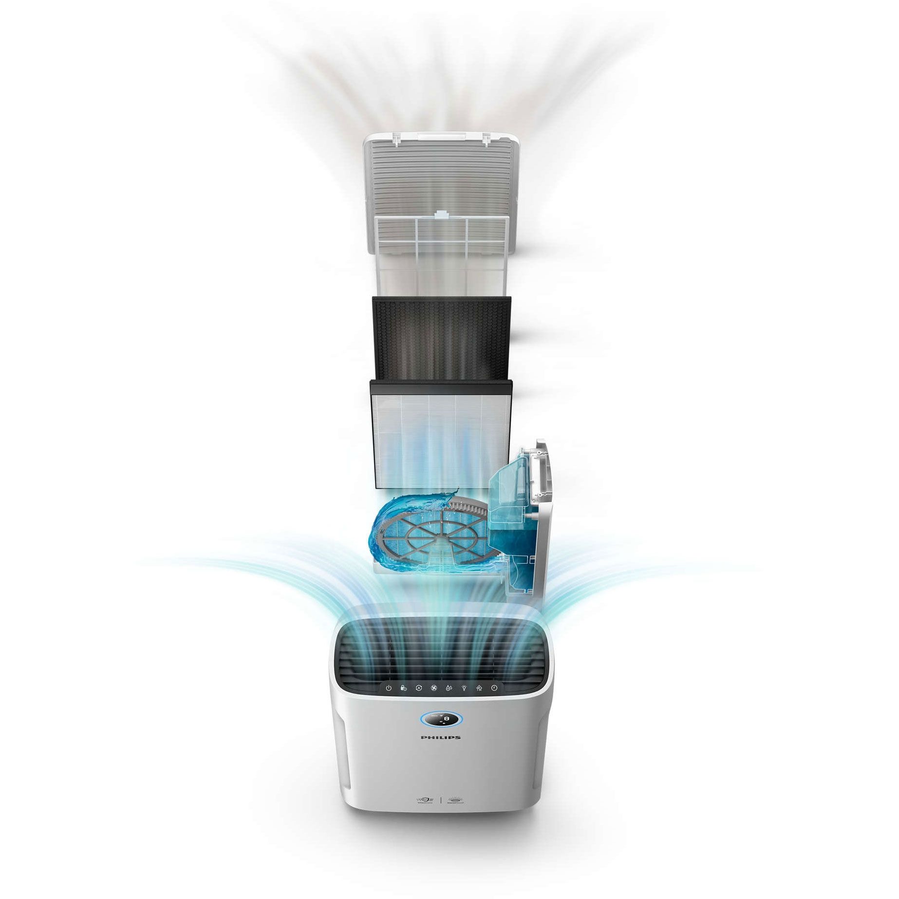 Umidificare igienică de până la 500 ml/h. Tehnologia NanoCloud utilizează un proces de evaporare natural şi igienic pentru a asigura performanţe superioare de până la 500 ml/h. Odată ce apa se evaporă, vaporii devin invizibili şi moleculele mici sunt mai puţin capabile să transporte bacterii în aer. Testele noastre de laborator confirmă faptul că tehnologia NanoCloud răspândeşte cu 99 % mai puţine bacterii decât umidificatoarele cu ultrasunete de top. De asemenea, previne petele umede şi praful alb. Alege modul 2 în 1 sau Numai purificator. Comută între modul 2 în 1 şi Numai purificator printr-o simplă apăsare a unui buton. Alege 2 în 1 pentru aer mai curat, fără disconfortul cauzat de aerul uscat în timpul sezonului uscat. Modul Numai purificator dezactivează funcţia de umidificare când aceasta nu este necesară.