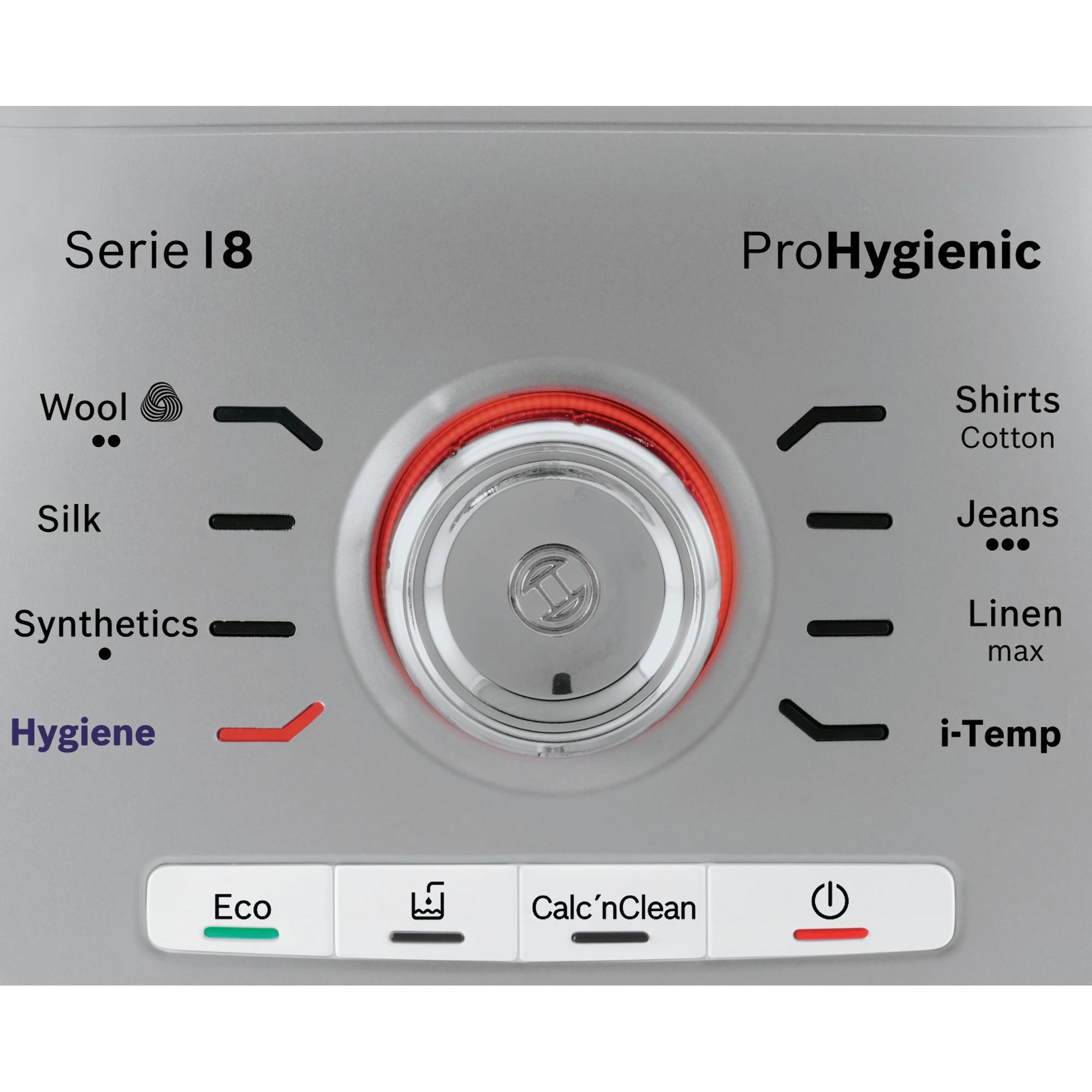 ProHygienic. Tehnologia inovatoare HygienicSteam asigură igiena optimă la îngrijirea rufelor: un program de igienă special elimină 99,9% dintre bacterii, fără aditivi suplimentari – chiar și din țesăturile mai groase – și este blând cu rufele în acest proces. Această tehnologie specială cu aburi reduce umiditate acumulată în textile și ucide bacteriile.