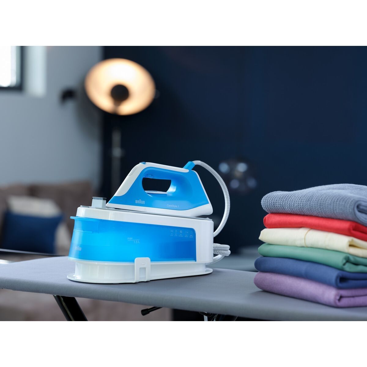 Calcat rapid si usor - haine perfect calcate economisind cu 50%* mai mult timp pentru ceea ce conteaza cu adevarat. Si tu iti doresti haine perfect calcate? Si sesiuni de calcat mai rapide? Combinatia unica a tehnologiilor Braun iti salveaza 50% din timp. Statia de calcat cu aburi CareStyle 1 imbina tehnologia FreeGlide 3D – prima tehnologie din lume pentru calcare 360˚, cu tehnologia DoubleSteam ce asigura sesiuni de calcat de 2 ori mai rapide. Un standard pentru toate statiile de calcat cu aburi de la Braun, FreeGlide 3D asigura o alunecare fara efort peste orice detaliu, in orice directie. Nu te vei bloca in nasturi, buzunare si fermoare. Sistemul DoubleSteam produce de 2 ori mai mult abur in comparatie cu un fier de calcat traditional fapt ce ajuta la reducerea timpului de calcare. Intensitatea vaporilor este cu 100% mai mare, cutele sunt eliminate mai rapid si nu trebuie sa treci de mai multe ori peste o anumita zona. Pentru mai multa versatilitate, poate fi folosit chiar si in pozitie verticala. Statia de calcat se incalzeste rapid (2 minute), este silentioasa si are sistem de siguranta. In plus ai la dispozitie prin butonul termostat 4 setari reglabile, talpa SuperCeramic si sistem Easy CalcClean cu avertizare pentru depuneri acumulate.