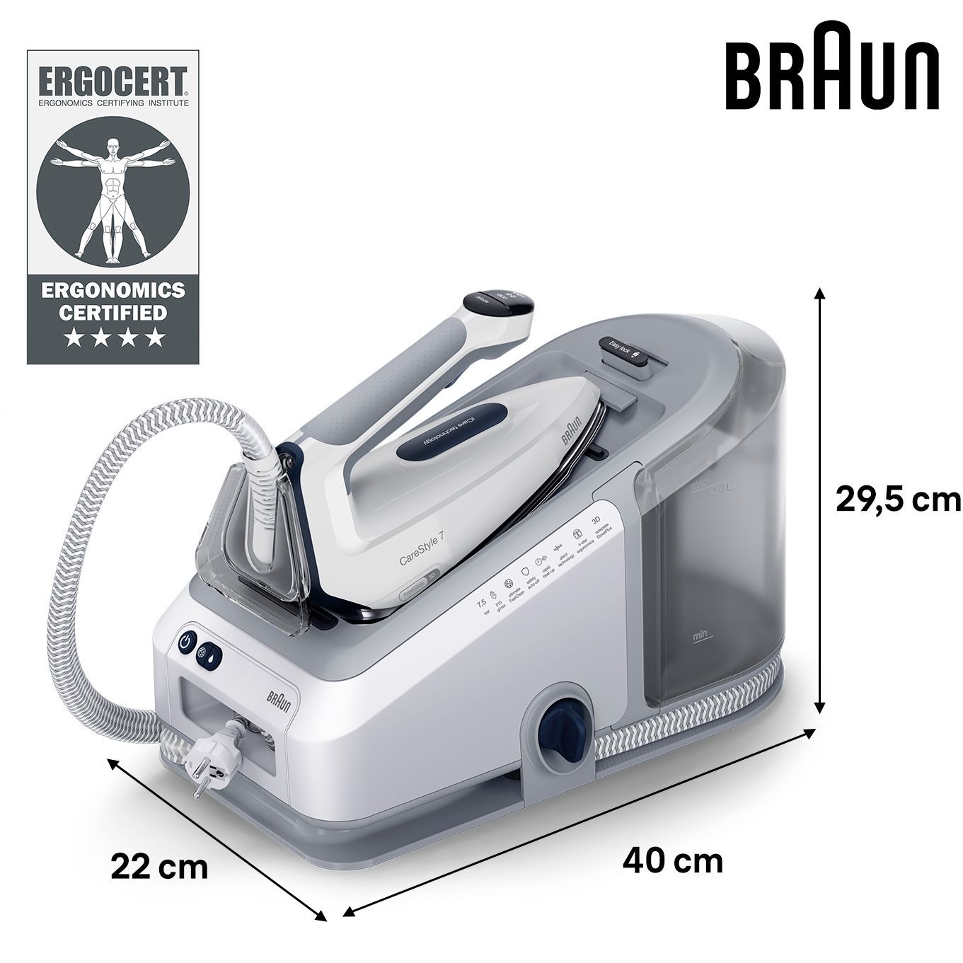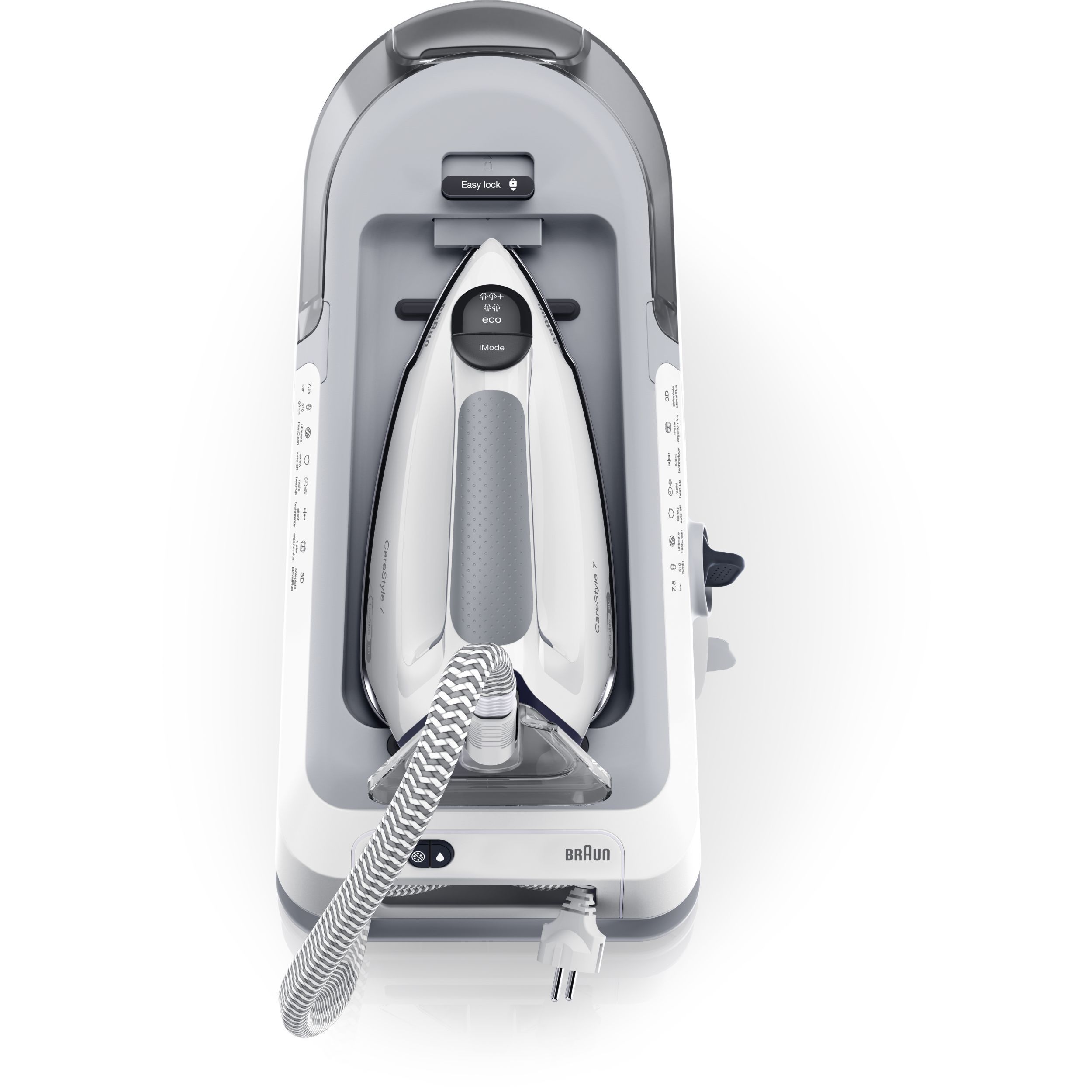 CareStyle 7 este cel mai puternic sistem de călcat Braun,care oferă rezultate profesionale de călcat datorită puterii mari a aburului. Echipat cu tehnologia noastră revoluționară PowerSteam,CareStyle 7 facilitează netezirea rapidă chiar și a celor mai dificile cute.