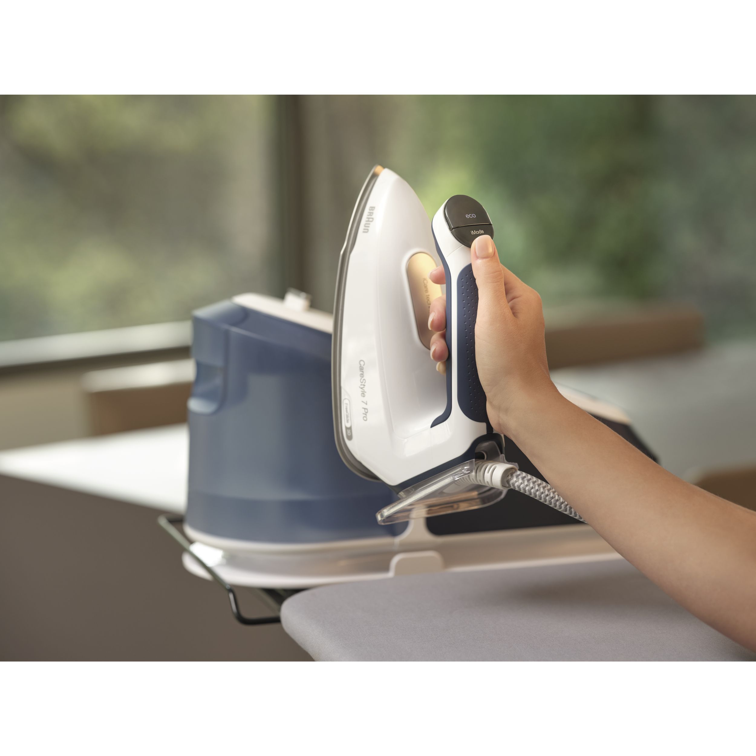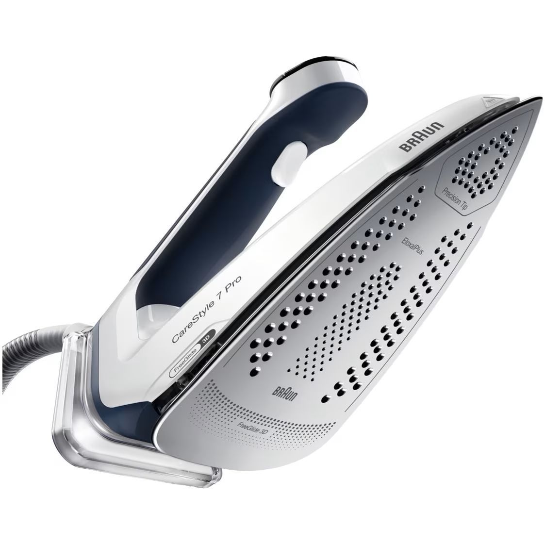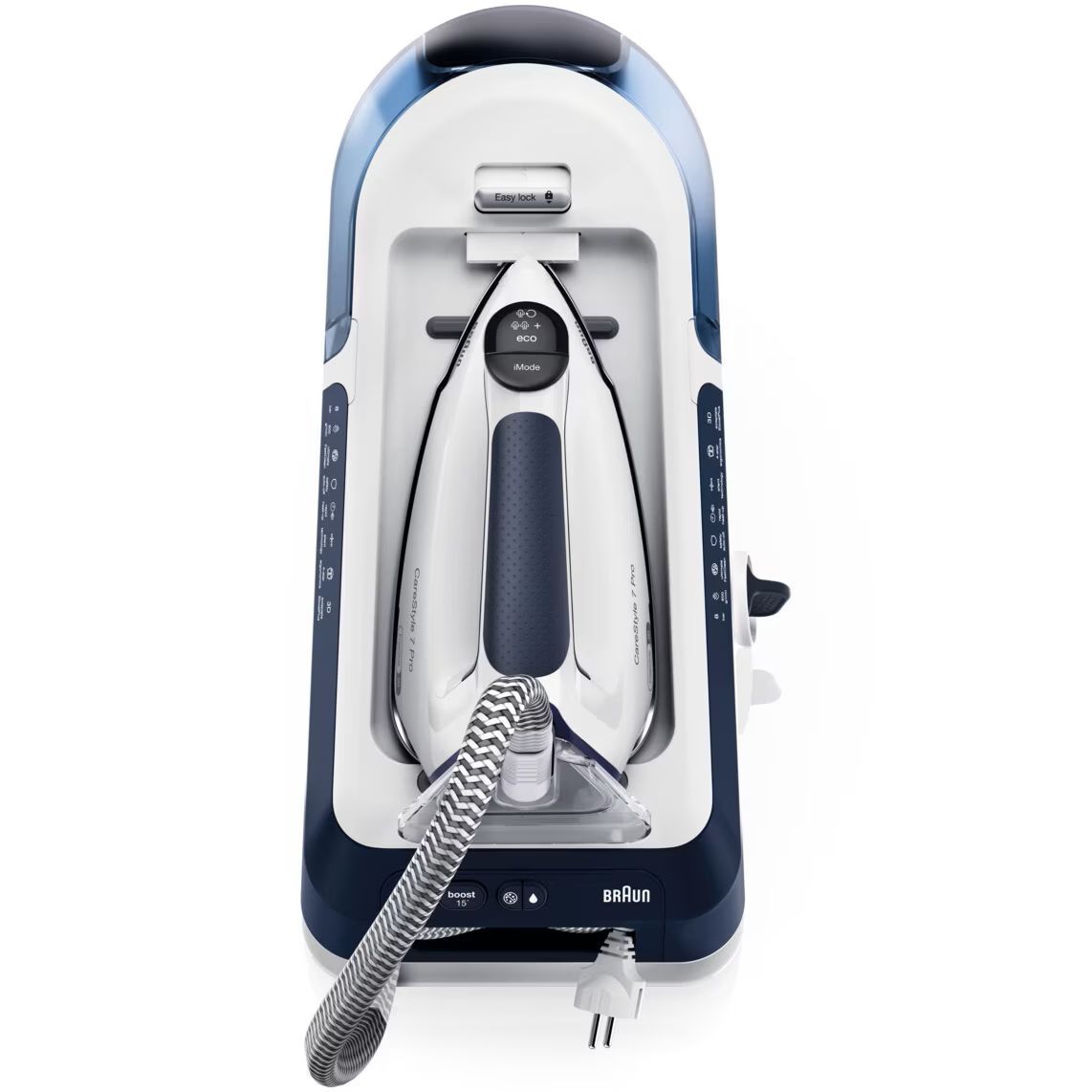 Noua stație CareStyle 7 Pro este cel mai puternic sistem de călcat* – furnizând abur continuu de până la 190 g/min* datorită tehnologiei inovatoare PowerSteam. Descoperiți un nou nivel de calitate a călcatului și funcții inovatoare care vă permit să gestionați ușor și rapid cele mai dificile materiale și cele mai persistente cute. Obțineți rezultate profesionale de călcat, cu ușurință și fără efort, datorită designului special ergonomic al mânerului primului fier de călcat certificat ergonomic din lume**.
