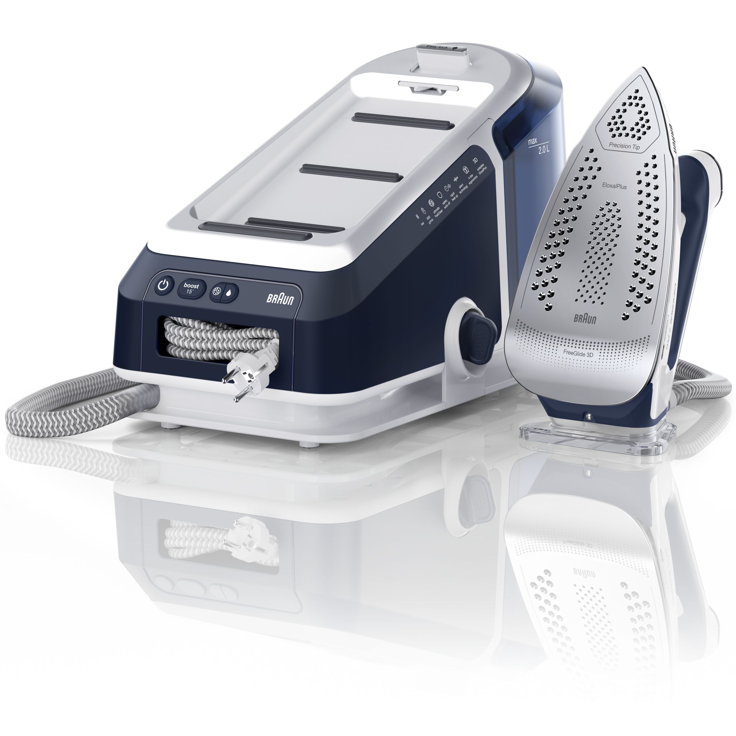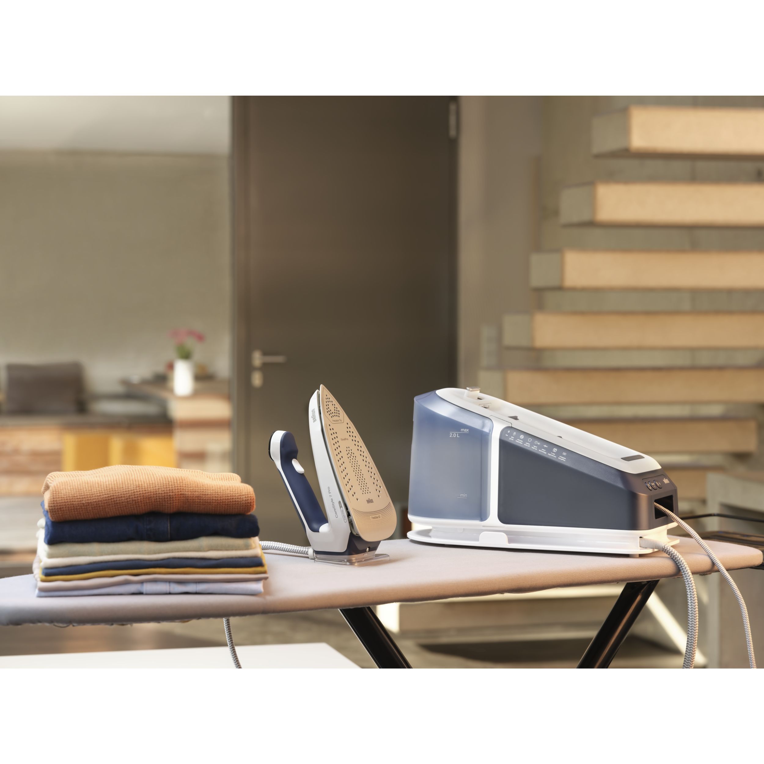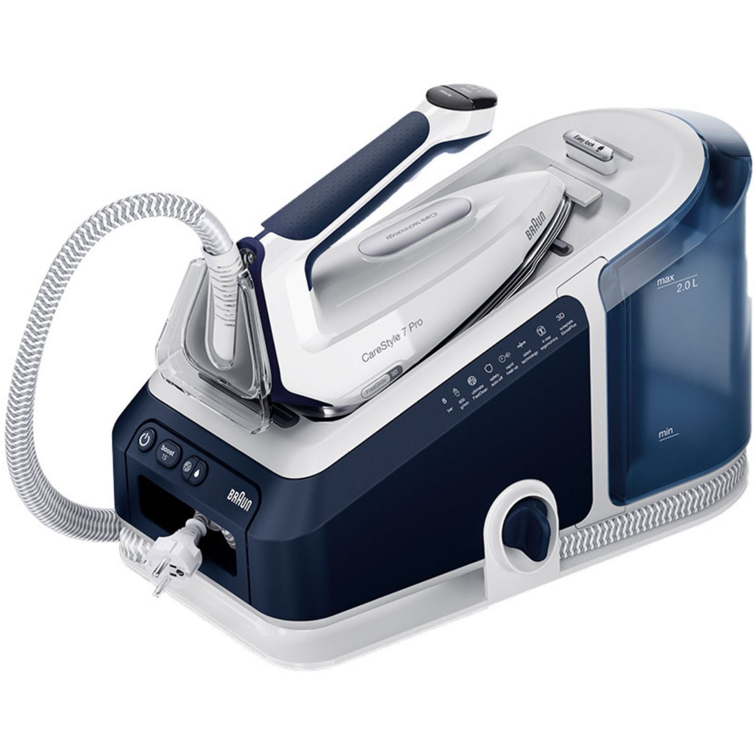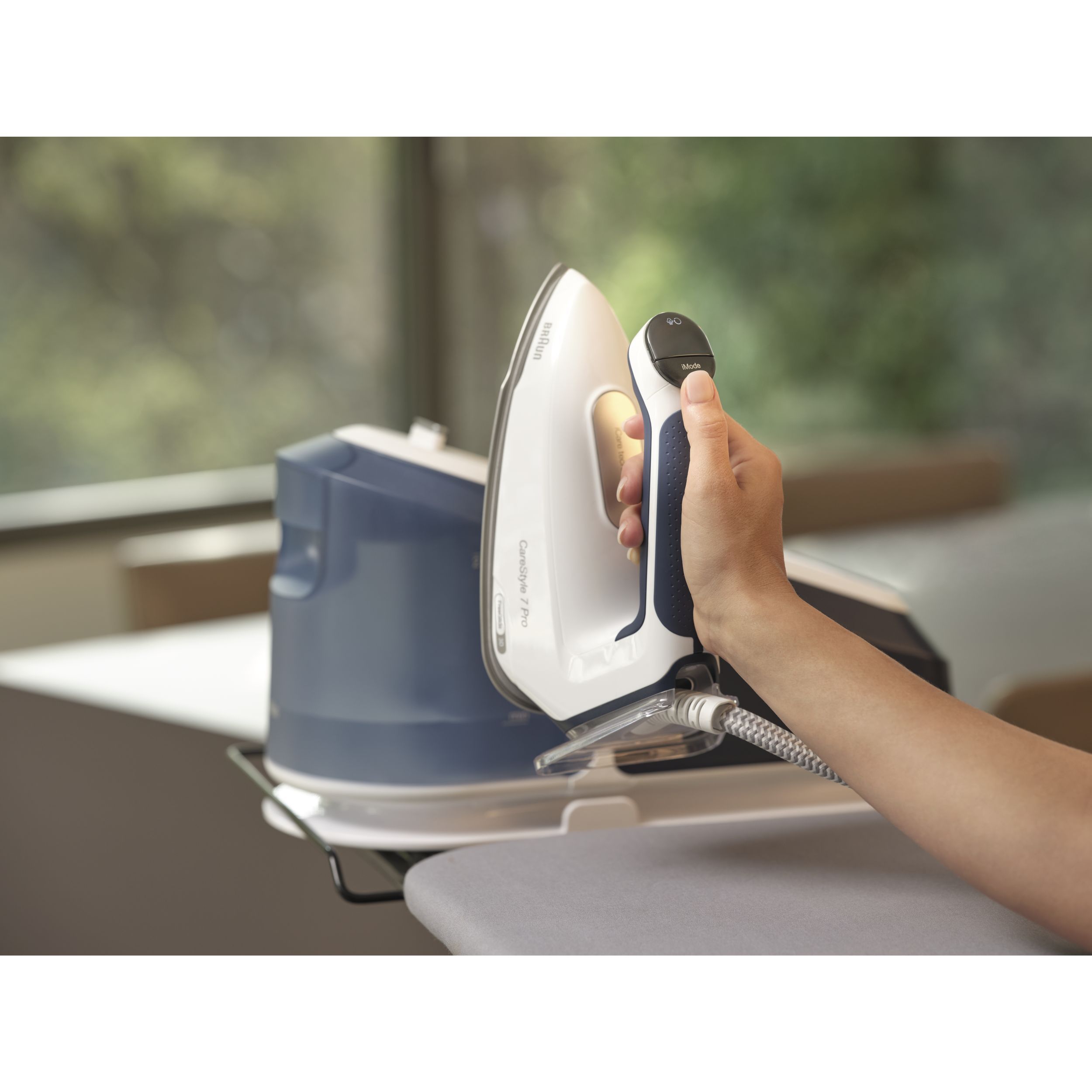 Noua stație CareStyle 7 Pro este cel mai puternic sistem de călcat* – furnizând abur continuu de până la 190 g/min* datorită tehnologiei inovatoare PowerSteam. Descoperiți un nou nivel de calitate a călcatului și funcții inovatoare care vă permit să gestionați ușor și rapid cele mai dificile materiale și cele mai persistente cute. Obțineți rezultate profesionale de călcat, cu ușurință și fără efort, datorită designului special ergonomic al mânerului primului fier de călcat certificat ergonomic din lume**.