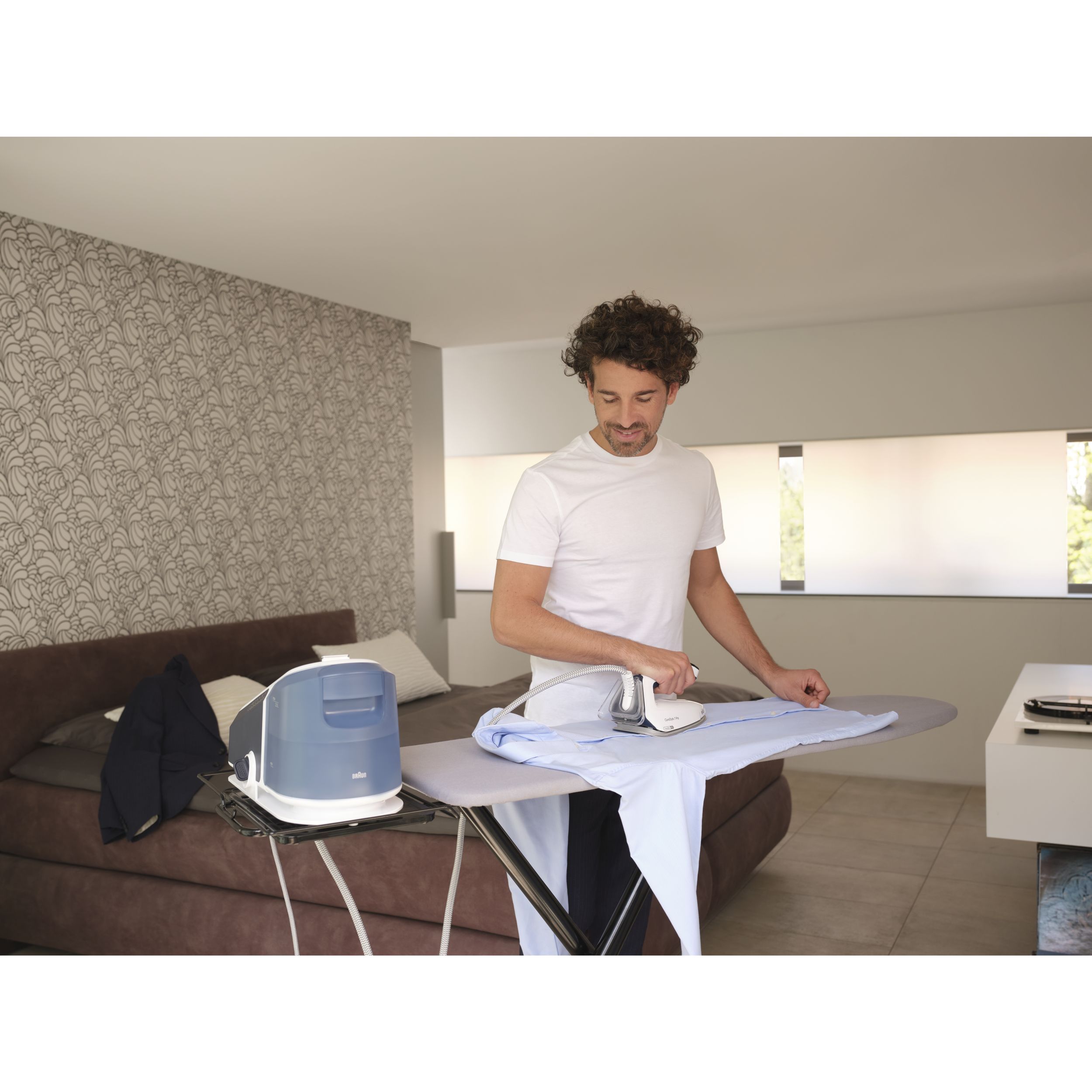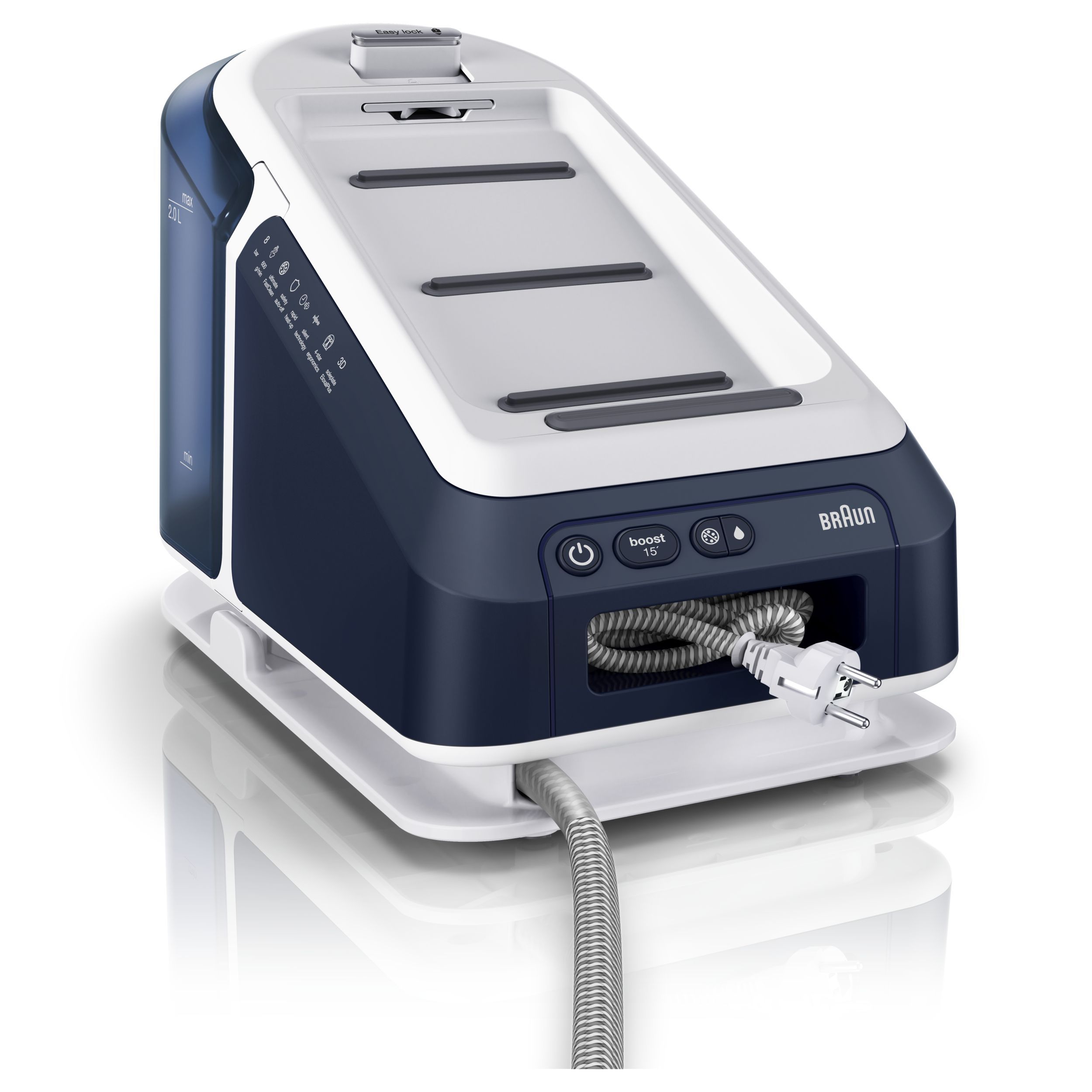 Datorită aburului său puternic continuu, călcatul vertical cu abur al perdelelor și al hainelor agățate este foarte simplu.