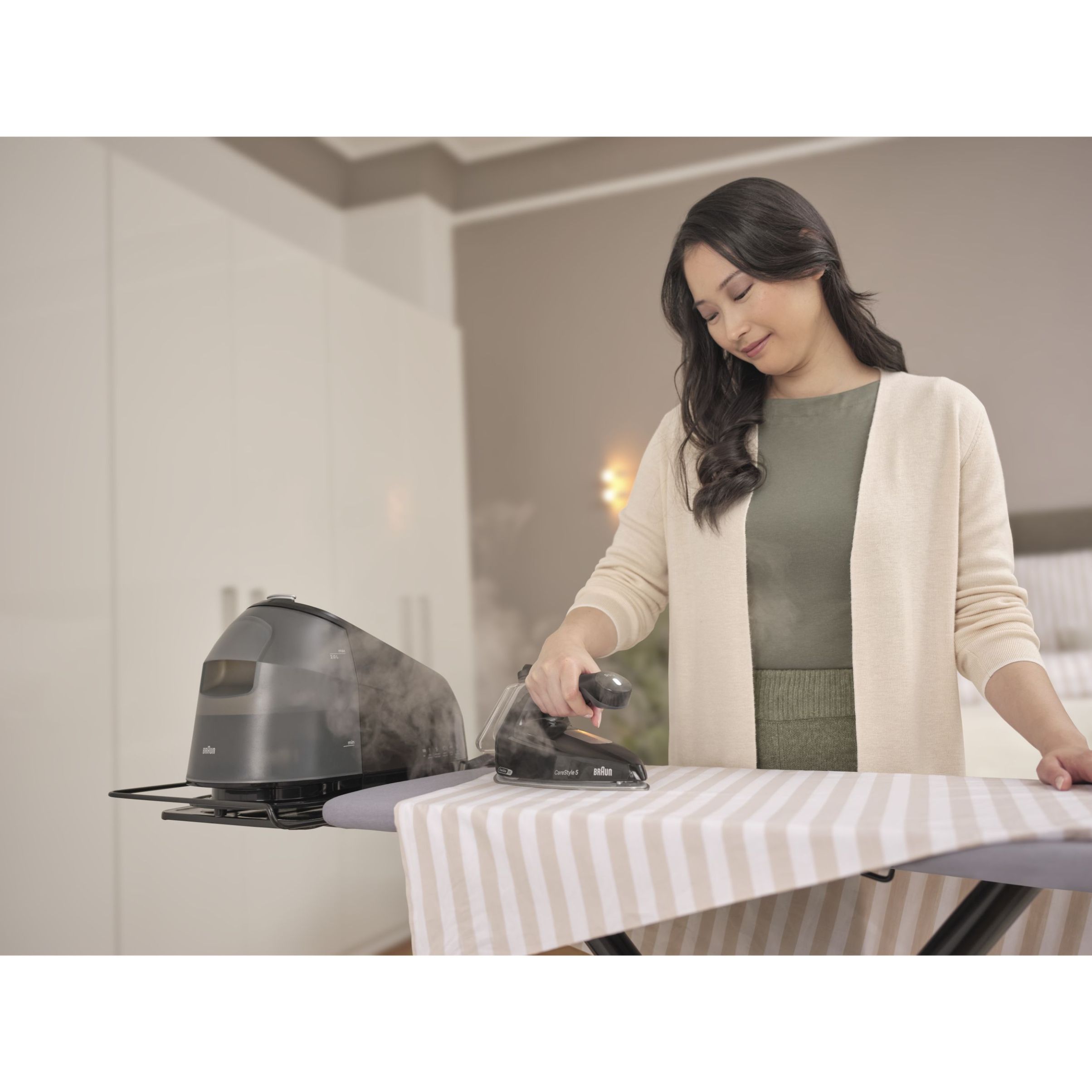 Stația de călcat cu aburi CareStyle 5 a fost construită conform celor mai înalte standarde de calitate germană. Pentru a vă oferi rezultate extraordinare în fiecare zi, pentru mulți ani de acum înainte, și pentru a face călcatul mai rapid și mai ușor. Designul clasic Braun exprimă aceste calități printr-un amestec fin între performanța superioară și linii și forme pure.