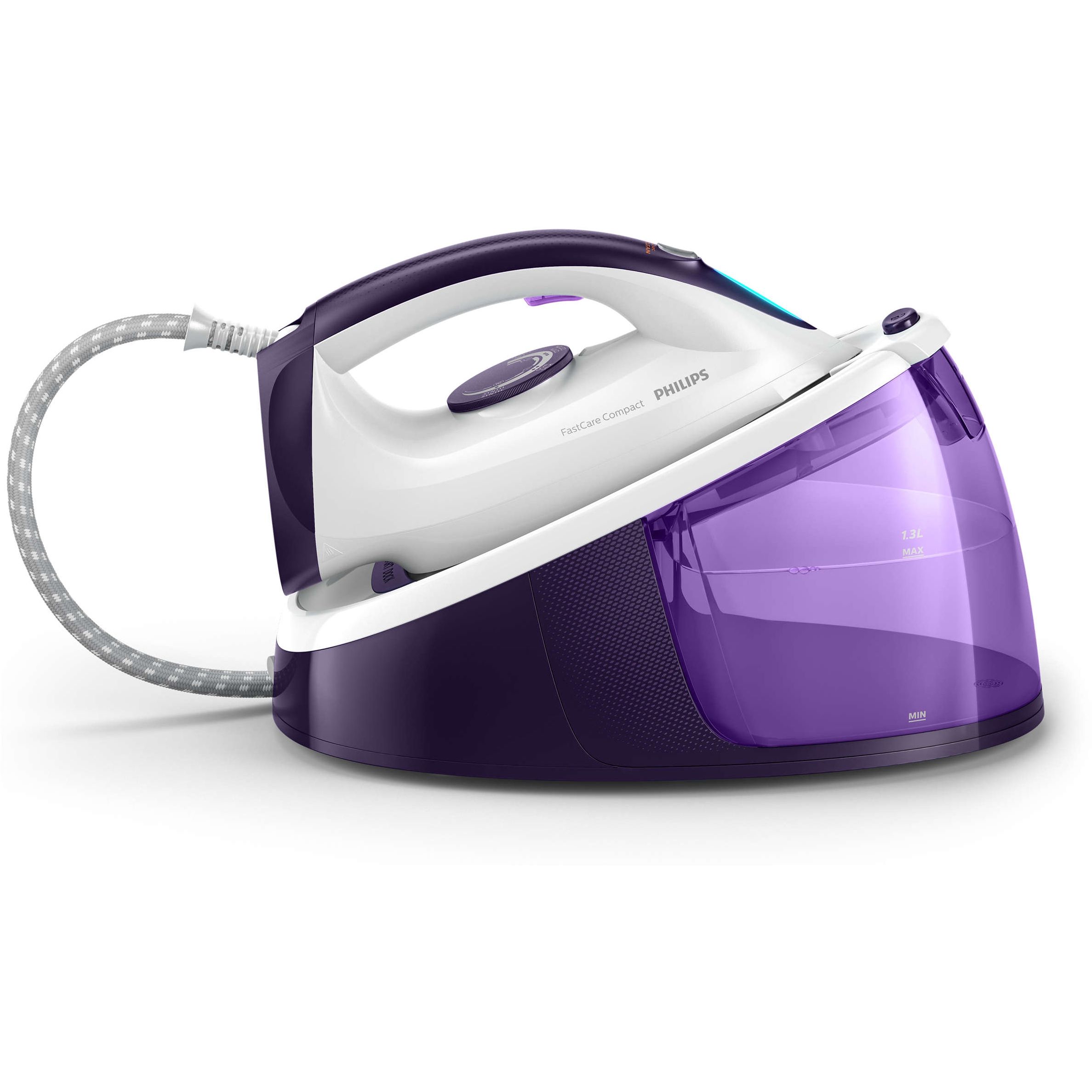Stație de călcat cu abur Philips FastCare Compact GC6730/30, Putere 2400W, Presiune 5.2bar, Continuu 110g/min, Jet 200g, Talpă Ceramic, Rezervor 1.3L, F 1.6m, C 1.65m, Fier 1.25kg