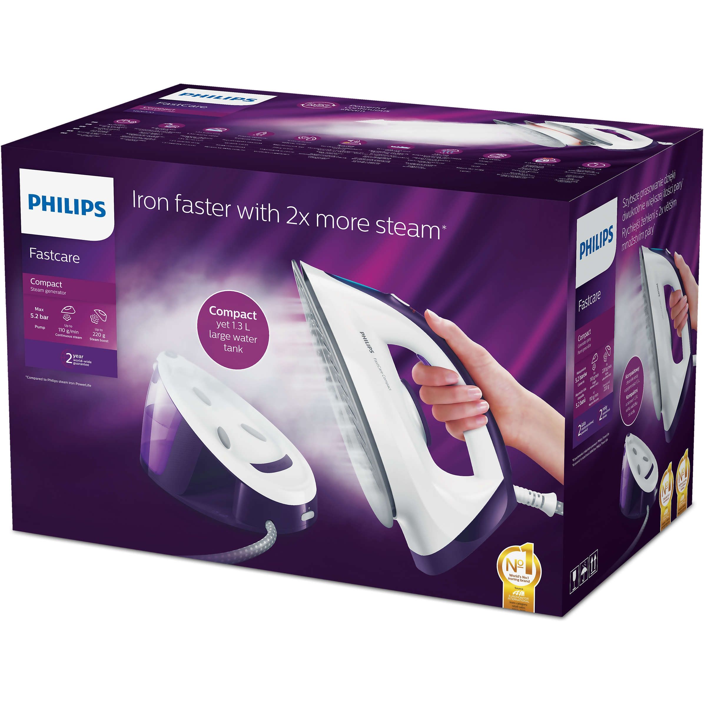 * - Comparativ cu fierul de călcat cu abur Philips PowerLife.