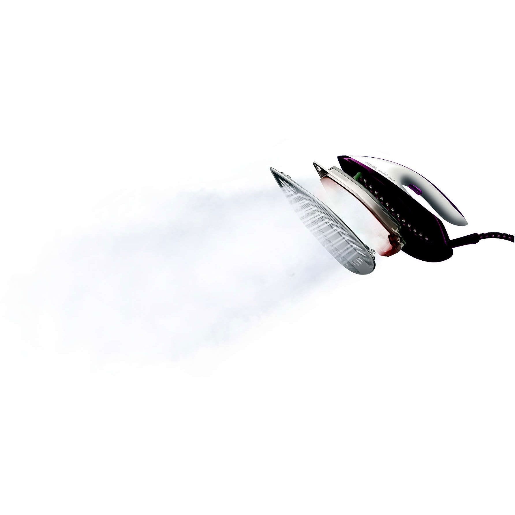 Abur puternic pentru cea mai eficientă îndepărtare a cutelor. Poţi beneficia de călcat ultra-rapid datorită tehnologiei revoluţionare. Aburul puternic şi continuu elimină chiar şi cele mai rezistente cute, iar materialele mai groase sunt călcate simplu şi rapid. În plus, dacă este necesar, este disponibil şi un jet de abur suplimentar, perfect pentru călcat vertical sau pentru cutele dificil de îndepărtat.