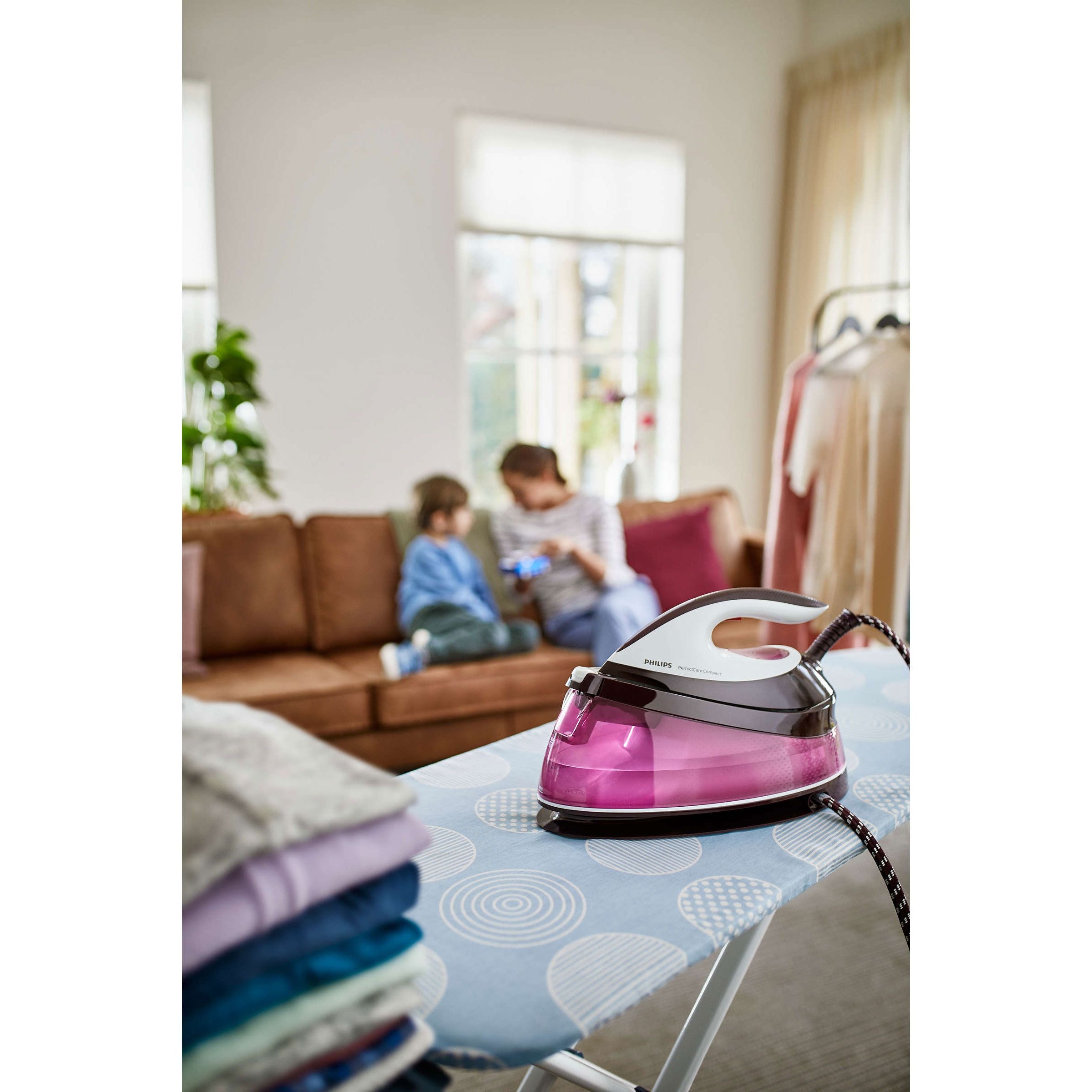Uşor şi compact pentru depozitare uşoară. Datorită tehnologiei revoluţionare ProVelocity, am putut crea o staţie de călcat cu abur mai compactă ca oricând. Dimensiunea mai mică se potriveşte perfect pe masa de călcat pentru utilizare comodă, iar transportul este mult mai uşor. În plus, staţia de călcat cu abur va necesita un spaţiu de depozitare mai mic.