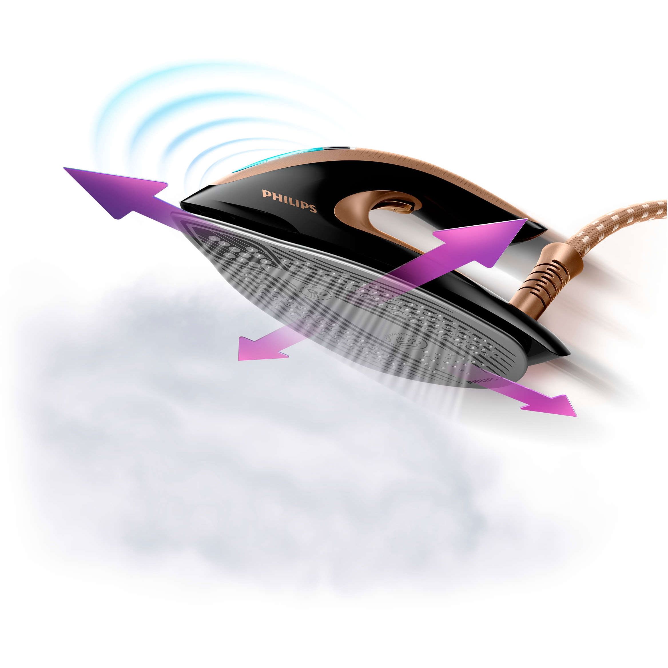 Fără arsuri – garantat. Graţie tehnologiei OptimalTEMP, garantăm că acest fier de călcat nu va produce arsuri pe niciun material care poate fi călcat. Poţi să îl laşi pe talpă pe haine sau pe masa de călcat. Fără arsuri şi fără a se crea luciu. Garantat.