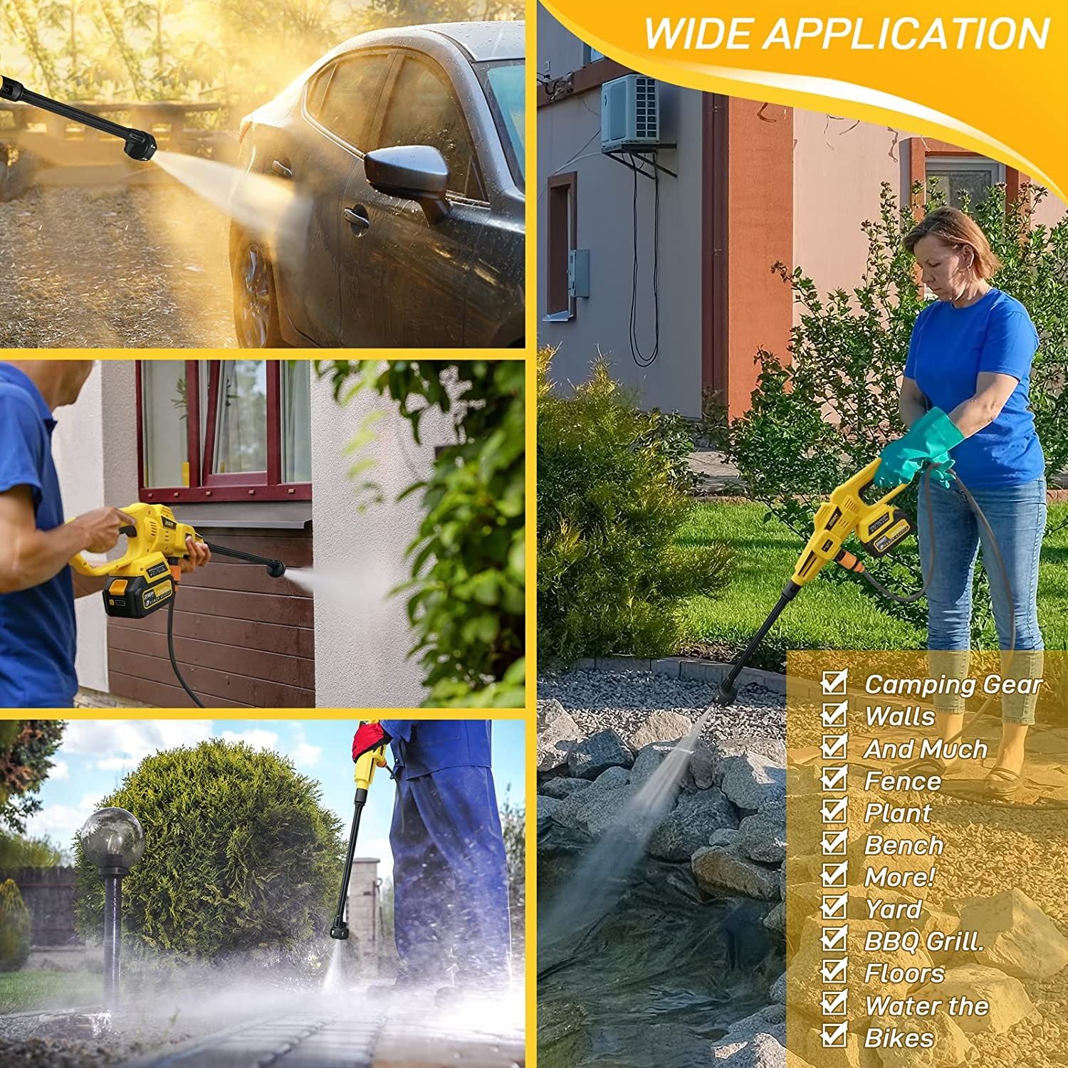 Motorul puternic fără perii, oferă până la 950 PSI max (900 PSI nominal), eliberând de 7 ori mai multă presiune decât un furtun de grădină obișnuit. Bateria de calitate AAA poate fi reîncărcată în mod repetitiv mai mult de peste 300 de ori și prin protecția împotriva supraîncălzirii/supraîncărcării/protecției împotriva exploziilor.