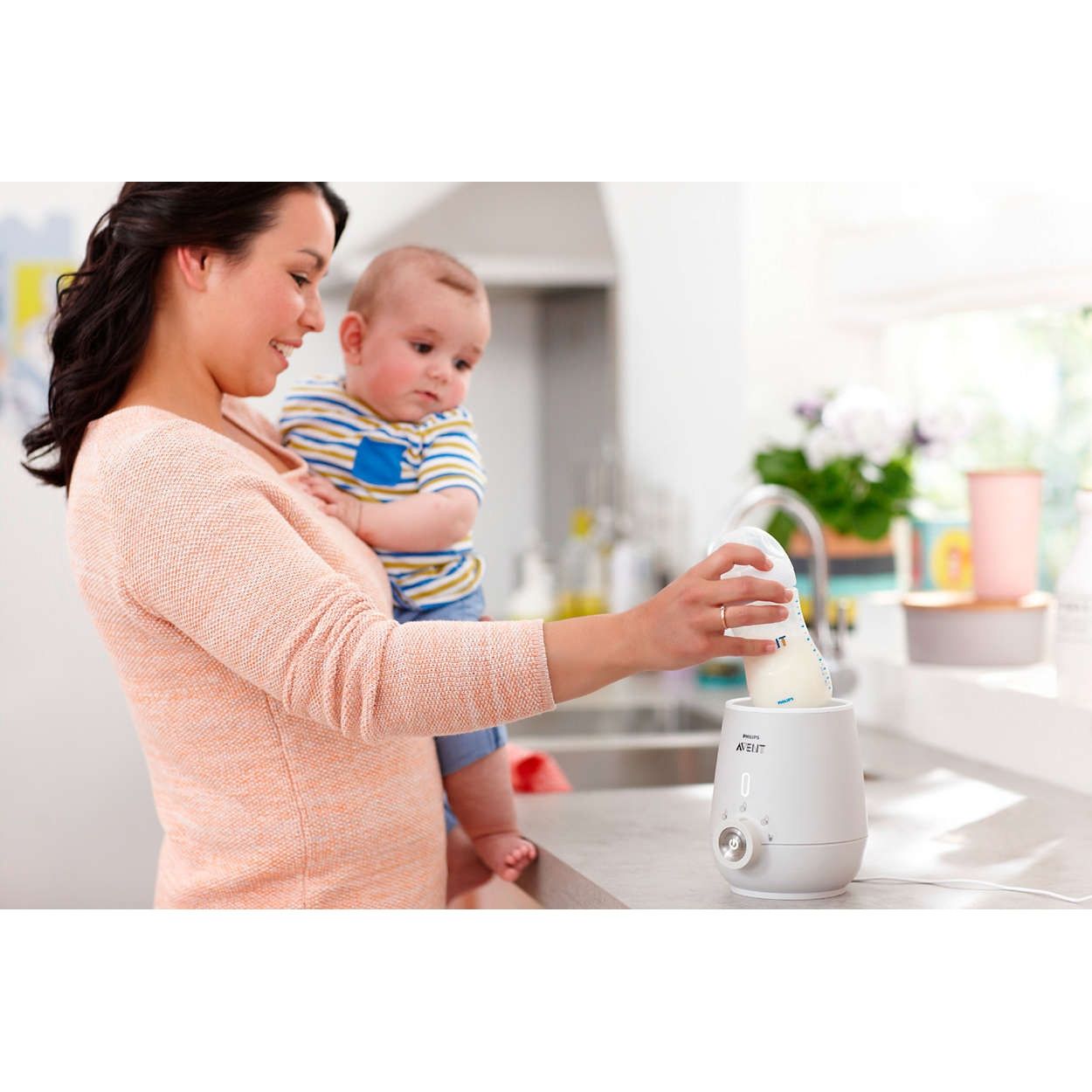 Indicator de progres intelligent. Aparatul de încălzit biberoane dispune de un indicator luminos de progres inteligent, pentru a te anunţa într-un mod simplu atunci când laptele este gata.
