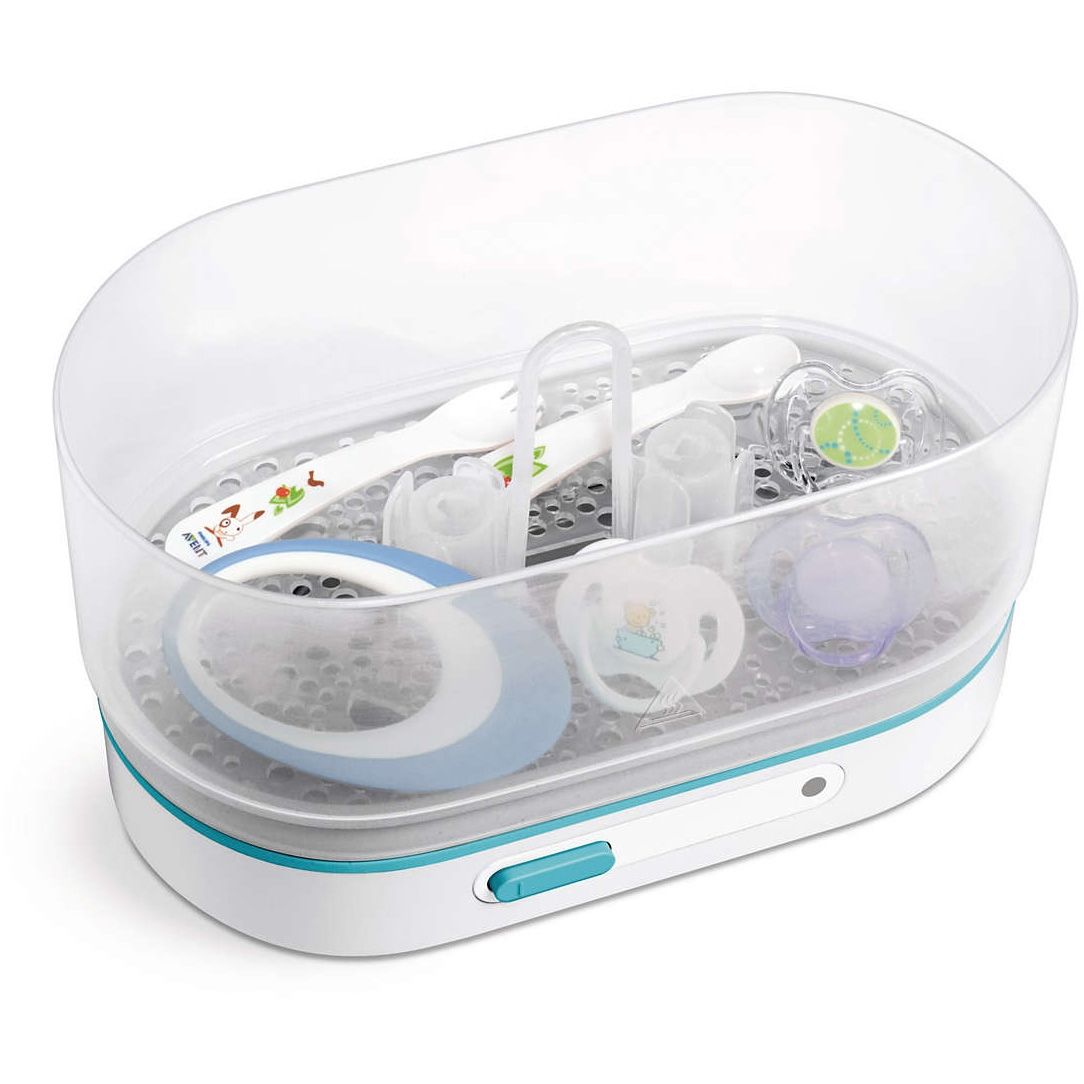 Sterilizează diferite biberoane, pompe de sân şi accesorii. Sterilizatorul poate fi utilizat atât pentru biberoanele cu gât standard, cât şi pentru cele cu gât larg. Poate fi utilizat şi pentru alte produse pentru copii, cum ar fi pompe de sân şi accesorii.