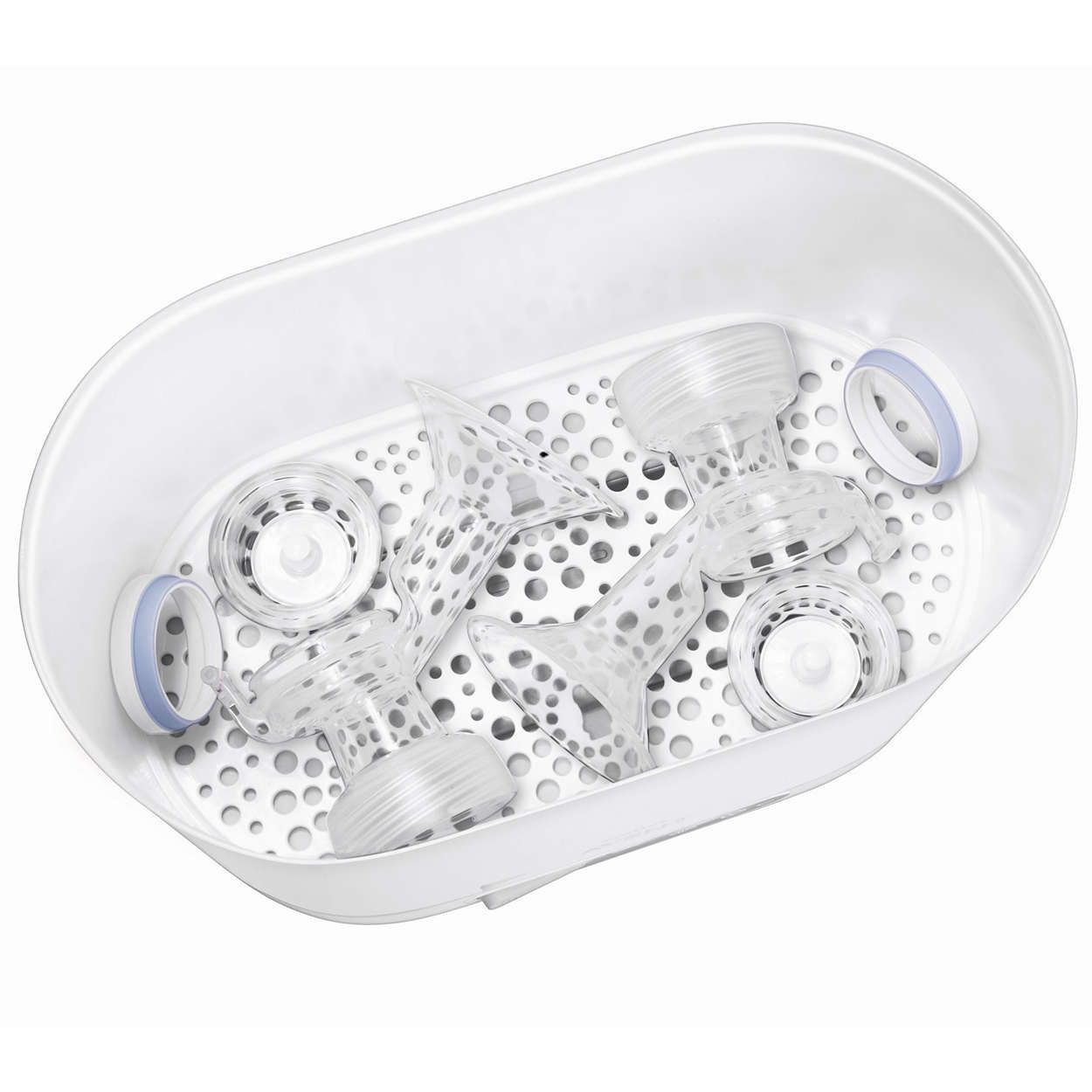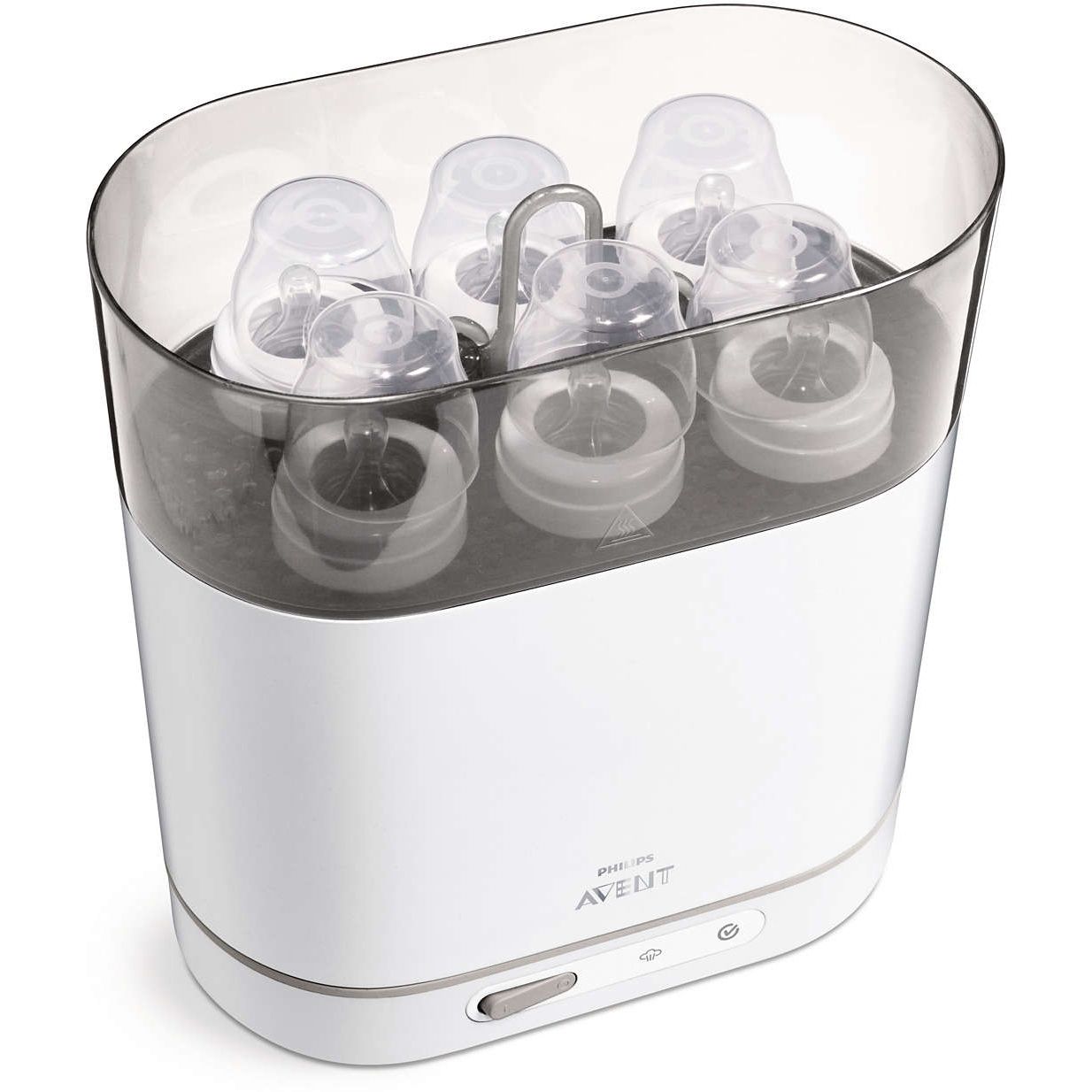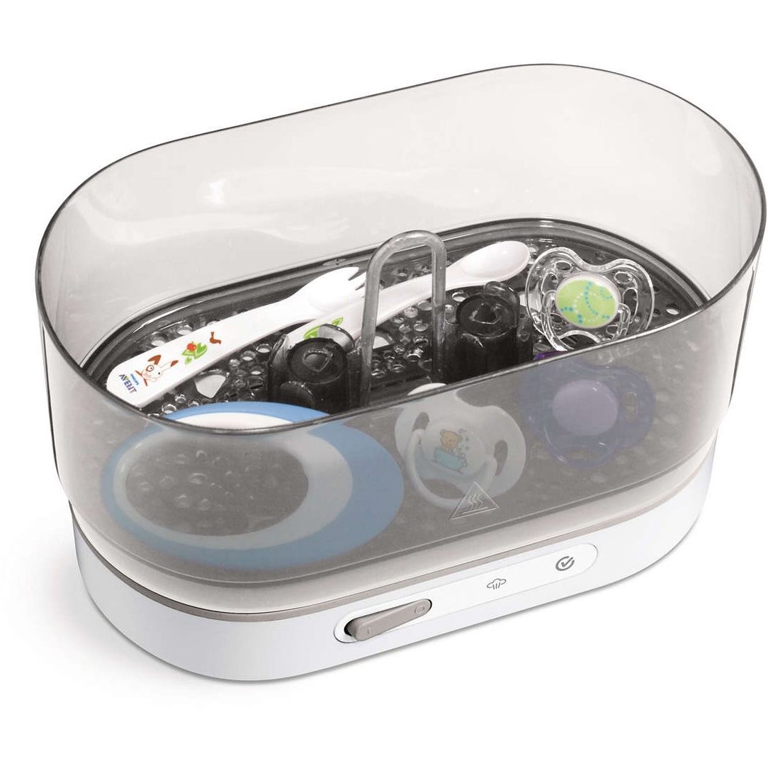Sterilizează diferite biberoane, pompe de sân şi accesorii. Sterilizatorul poate fi utilizat atât pentru biberoanele cu gât standard, cât şi pentru cele cu gât larg. Poate fi utilizat şi pentru alte produse pentru copii, cum ar fi pompe de sân şi accesorii.