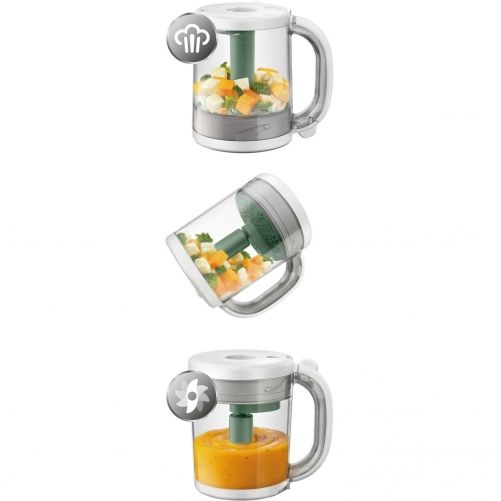 Prepară la abur, amestecă, dezgheaţă şi reîncălzeşte mâncărurile de casă preparate de tine. Aparatul 4-in-1 pentru prepararea mâncării bebeluşilor îţi permite să prepari mâncăruri de casă nutritive, utilizând un singur vas. Poţi servi mâncarea imediat sau o poţi depozita în containerul inclus, reîncălzind-o mai târziu cu ajutorul funcţiilor de reîncălzire sau de decongelare uşor de utilizat.