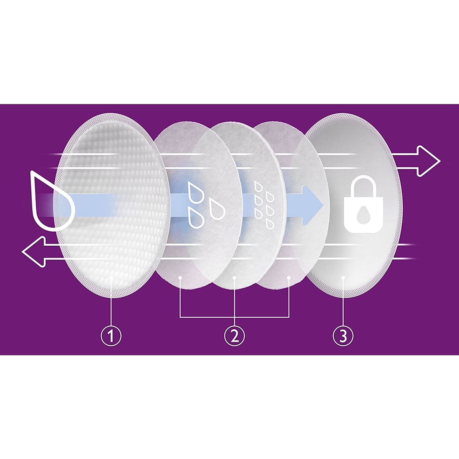 Umplutură triplu stratificată din material extrem de absorbant. Umplutura extrem de absorbantă captează umiditatea şi păstrează pielea uscată zi şi noapte. Material: umplutură din puf, materiale neţesute şi polimer super-absorbant
