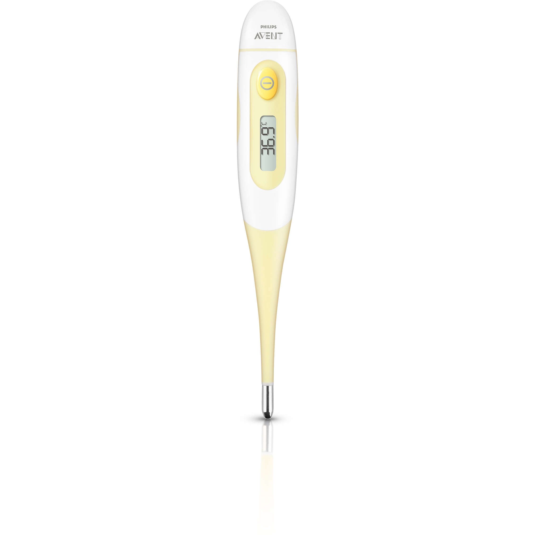 Termometru digital cu acurateţe profesională*. Măsoară temperatura bebelușului tău rapid, confortabil și cu acuratețe. Termomentrul digital are acuratețe profesională, iar vârful flexibil oferă confort suplimentar pentru tine și bebelușul tău. Functioneaza cu baterie de 1,55 V CC (LR41). Durată de viaţă a bateriei - peste 100 de ore de funcţionare. Interval de măsurare - între 35°C şi 42,9°C.