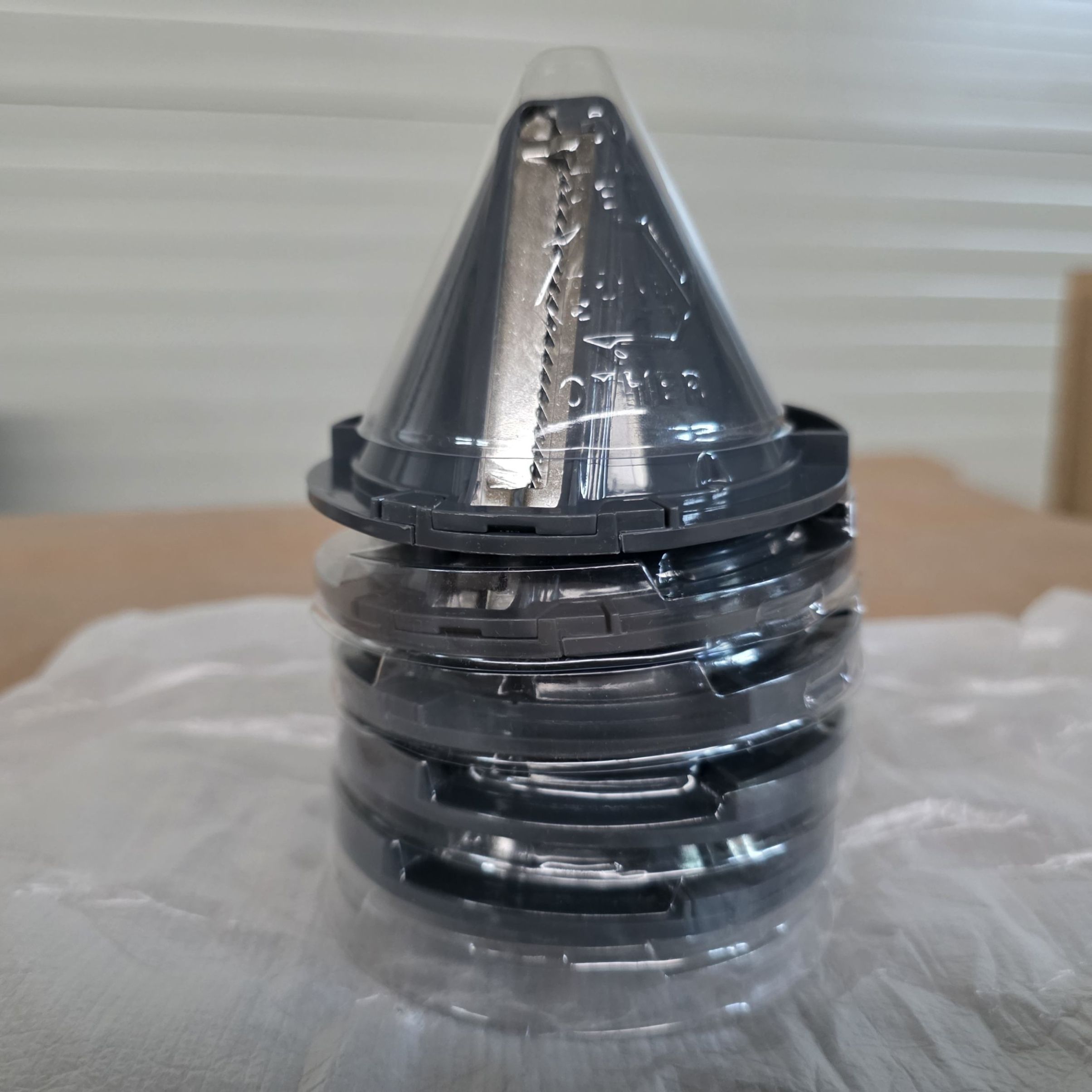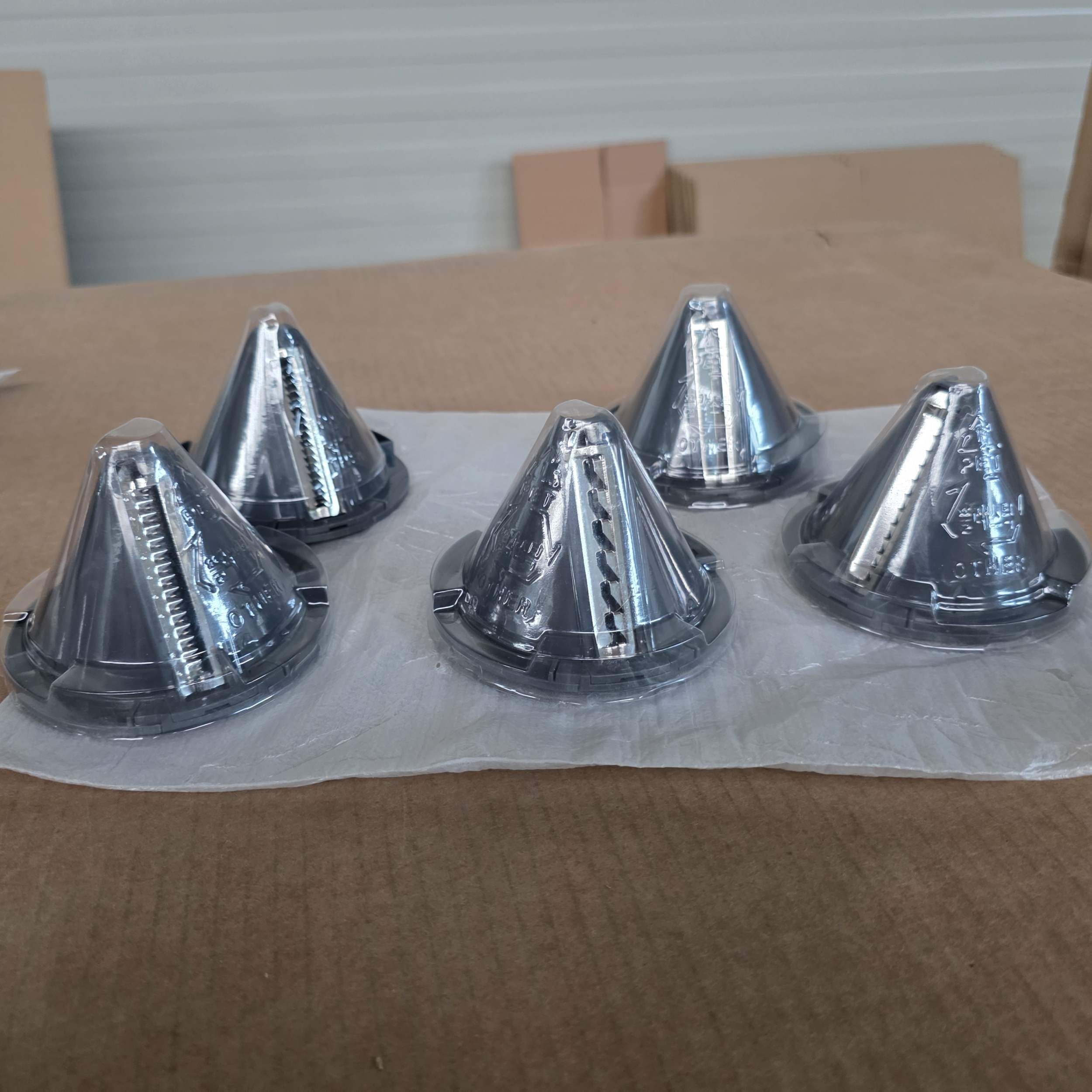 Include cinci lame din oțel inoxidabil ușor de montat, pentru a produce spaghete, linguine, tagliatelle, pappardelle sau forme de panglică și tăiței spiralați.