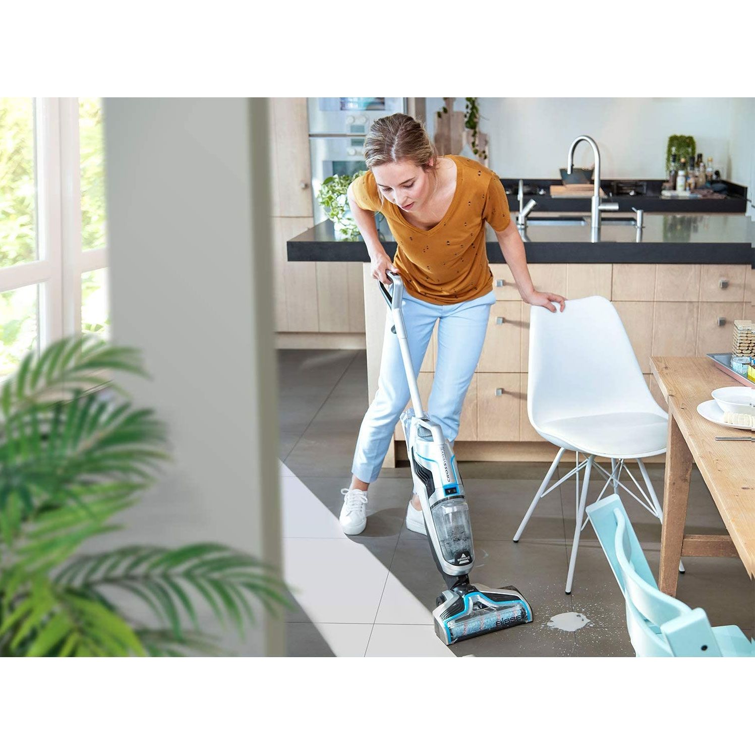 Cu BISSELL 3-in-1 CrossWave TM Cordless te eliberezi de restricţiile unui cordon sau fir. Cu o simplă atingere de buton poţi trece de la spălarea pardoselilor la aspirarea şi reîmprospătarea covoarelor. Puternica baterie Li-Ion 36V asigură o performanţă constantă pe întregul proces de curăţenie.