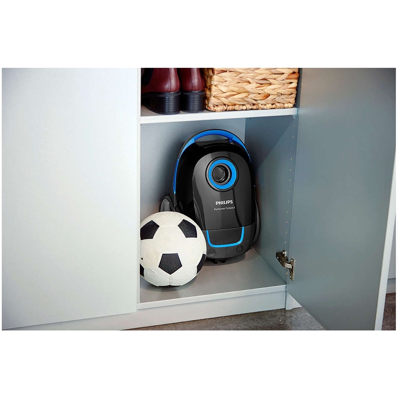 Accesorii integrate pentru confort maxim. Aspiratorul este conceput cu accesorii integrate, astfel încât nu este nevoie să transporţi piese suplimentare atunci când cureţi. Accesoriul pentru spaţii înguste este poziţionat pe rezervor, întotdeauna gata de utilizare.