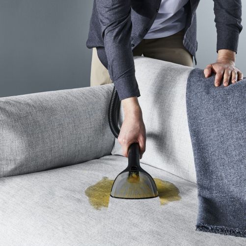 Aspirator pentru tapițerie care îndepărtează petele de pe suprafețele textile
