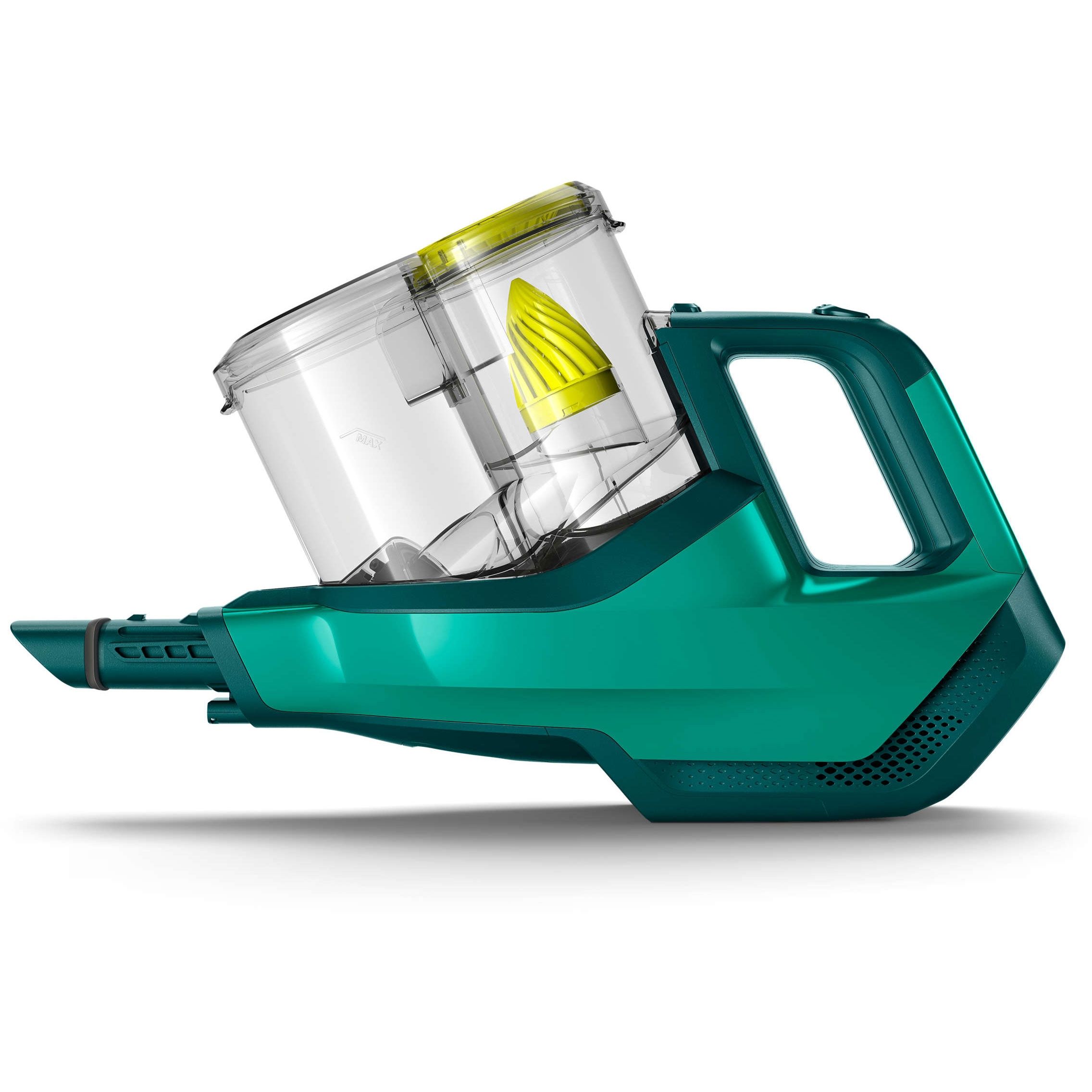 Până la 40 min. de putere de curăţare cu baterii Li-ion de 21,6 V. Bateriile litiu-ion de 21,6 V de înaltă performanţă oferă până la 40 de minute de funcţionare în modul normal şi 20 de minute în modul Turbo înainte de a trebui reîncărcate.