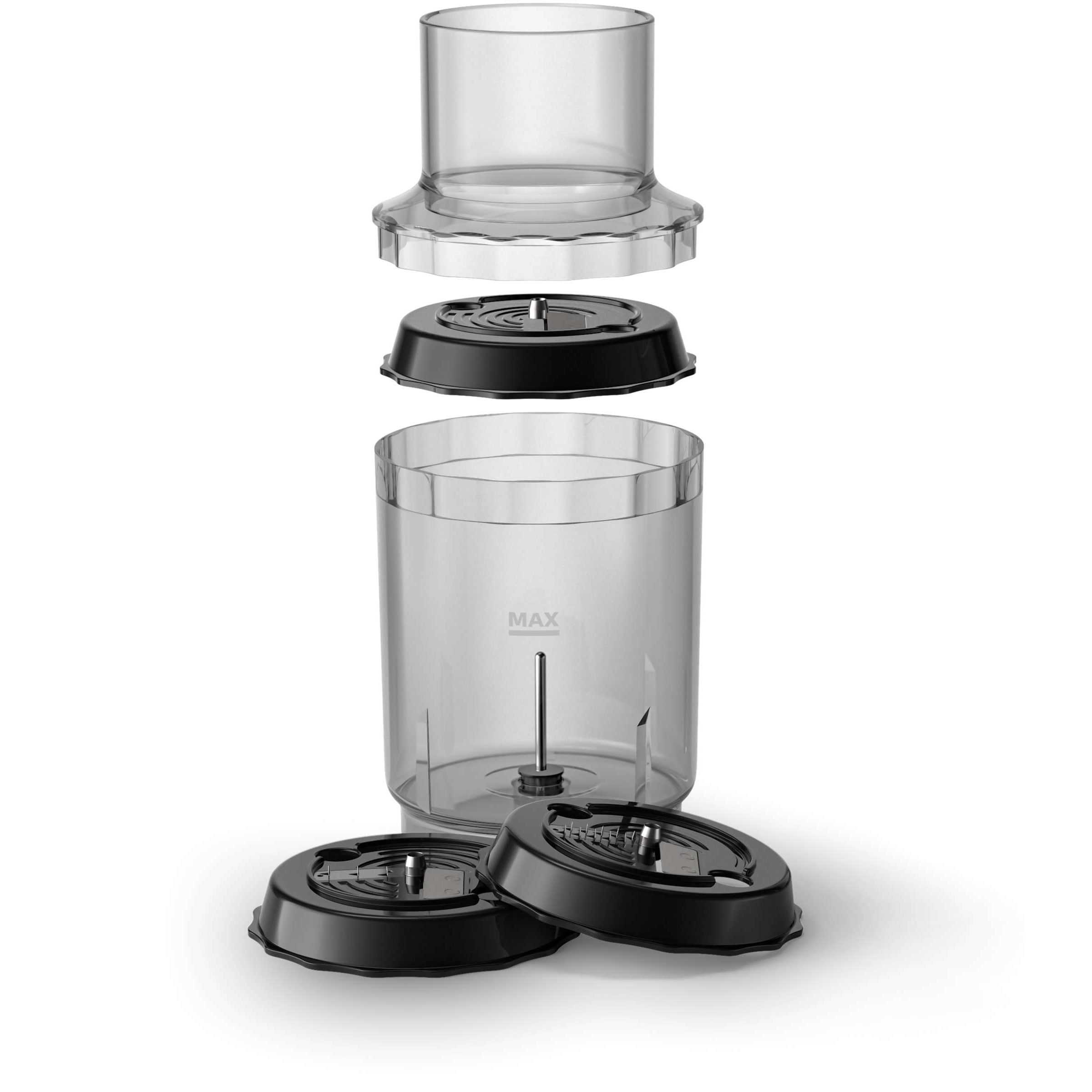 Eliberare cu un sigur buton pentru a schimba rapid accesoriile. Dacă eşti un bucătar iscusit, îţi va plăcea la nebunie uşurinţa cu care poţi schimba accesoriile. Se ataşează şi detaşează rapid de bara blenderului, cu o singură apăsare de buton. Apărătoare de lamă pentru a preveni stropirea în timpul procesării. Nu-ţi face griji legate de dezordine când găteşti. Apărătoarea specială pentru lamă va opri stropii mari şi mici. Forma sa ondulată, ataşată în partea de jos a barei blenderului, garantează murdărire minimă – şi mai puţin efort de curăţare mai târziu.