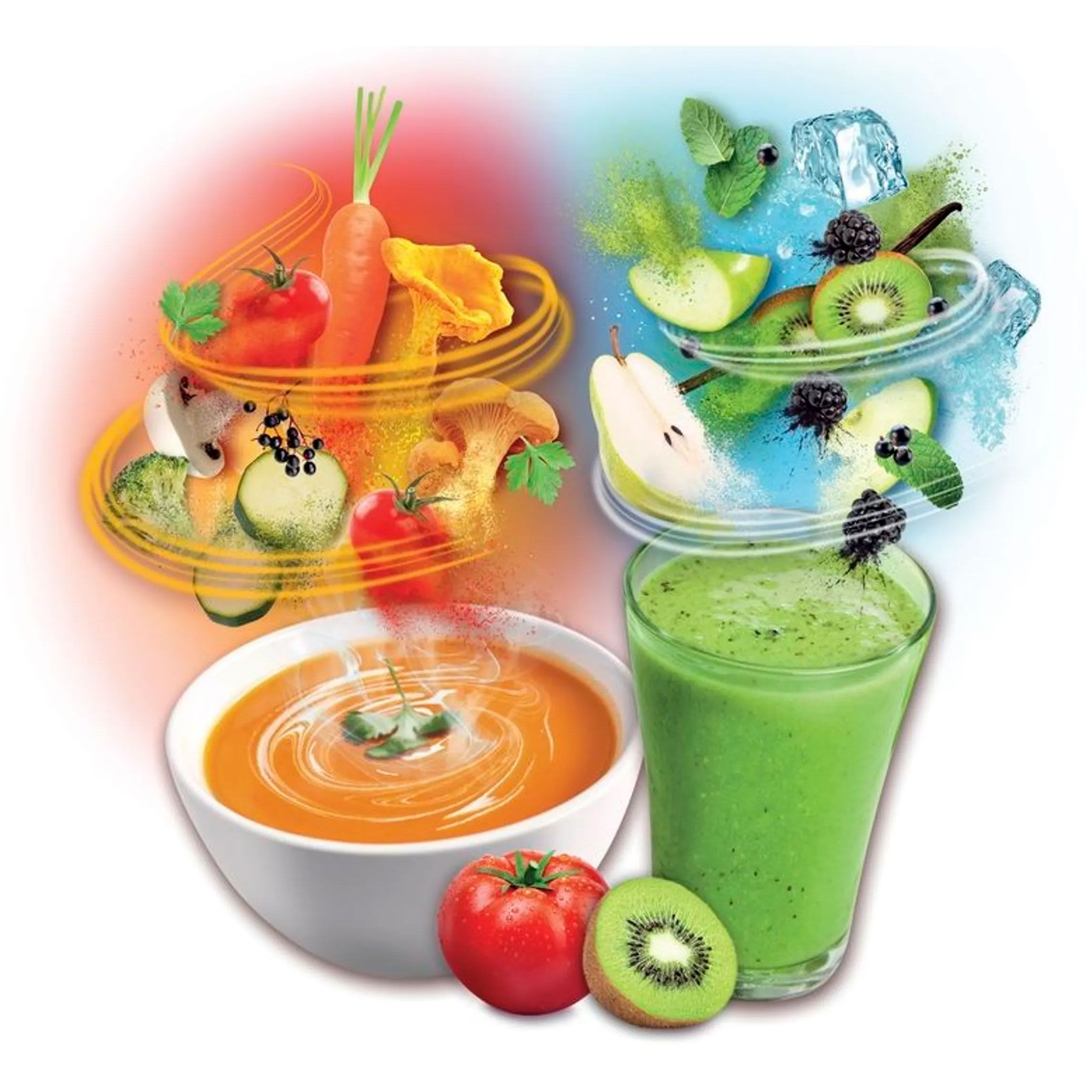 ¹10 funcții de gătire: supă, coulis, sos iute, compot, lapte vegetal, zdrobire a gheții, smoothie, milkshake, măcinare nuci, sorbet;