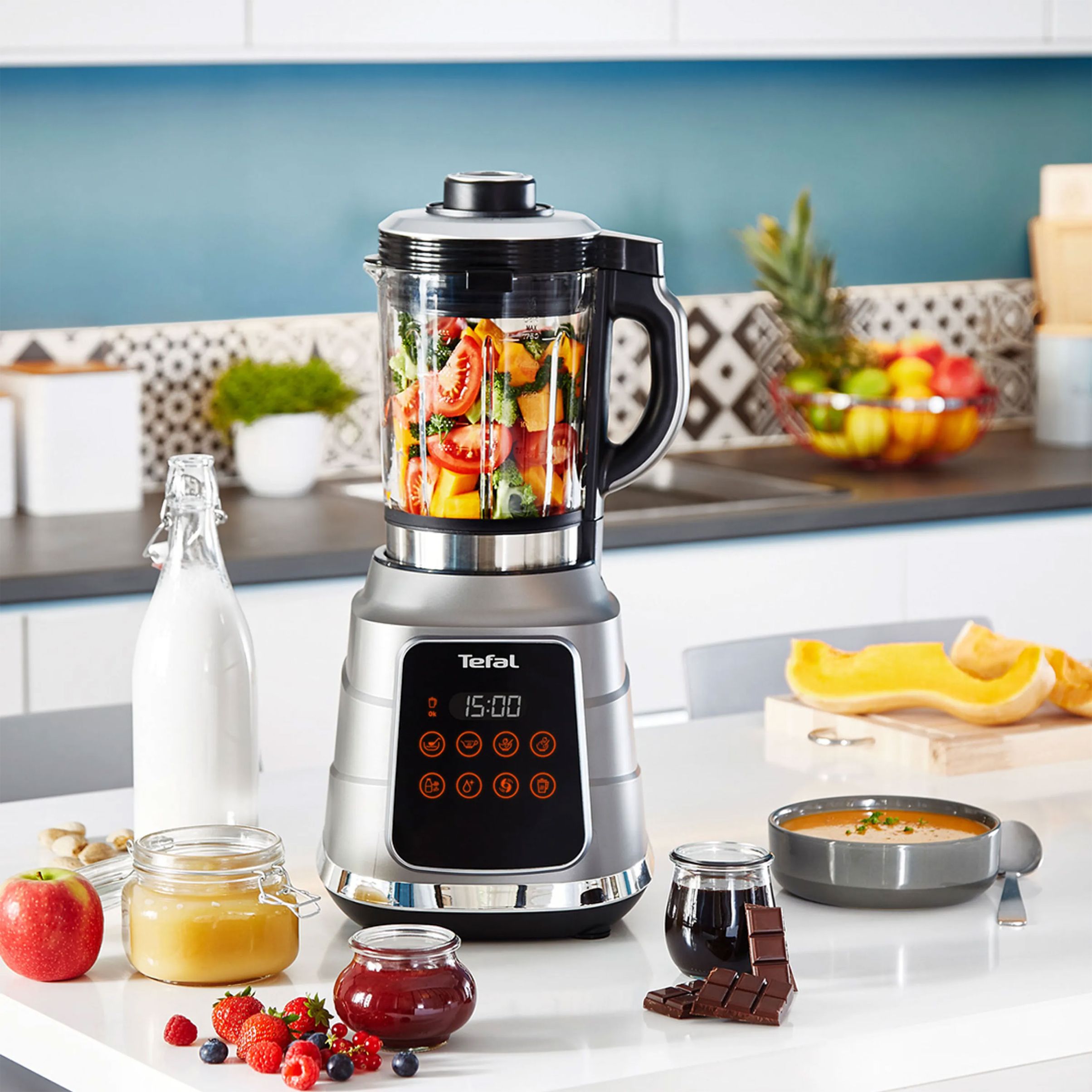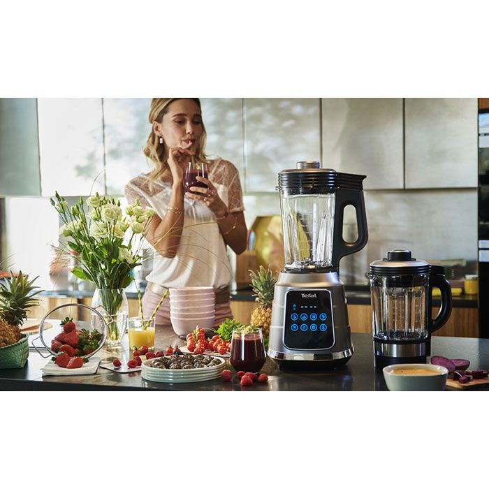 Blenderul oferă 10 funcții de gătire (supă, coulis, sos iute, compot, lapte vegetal, funcție de zdrobire a gheții, smoothie, milkshake, funcție pentru măcinarea nucilor, sorbet) și un display digital intuitiv, ușor de utilizat, pentru ca tu să te poți bucura de o gamă variată de preparate sănătoase.