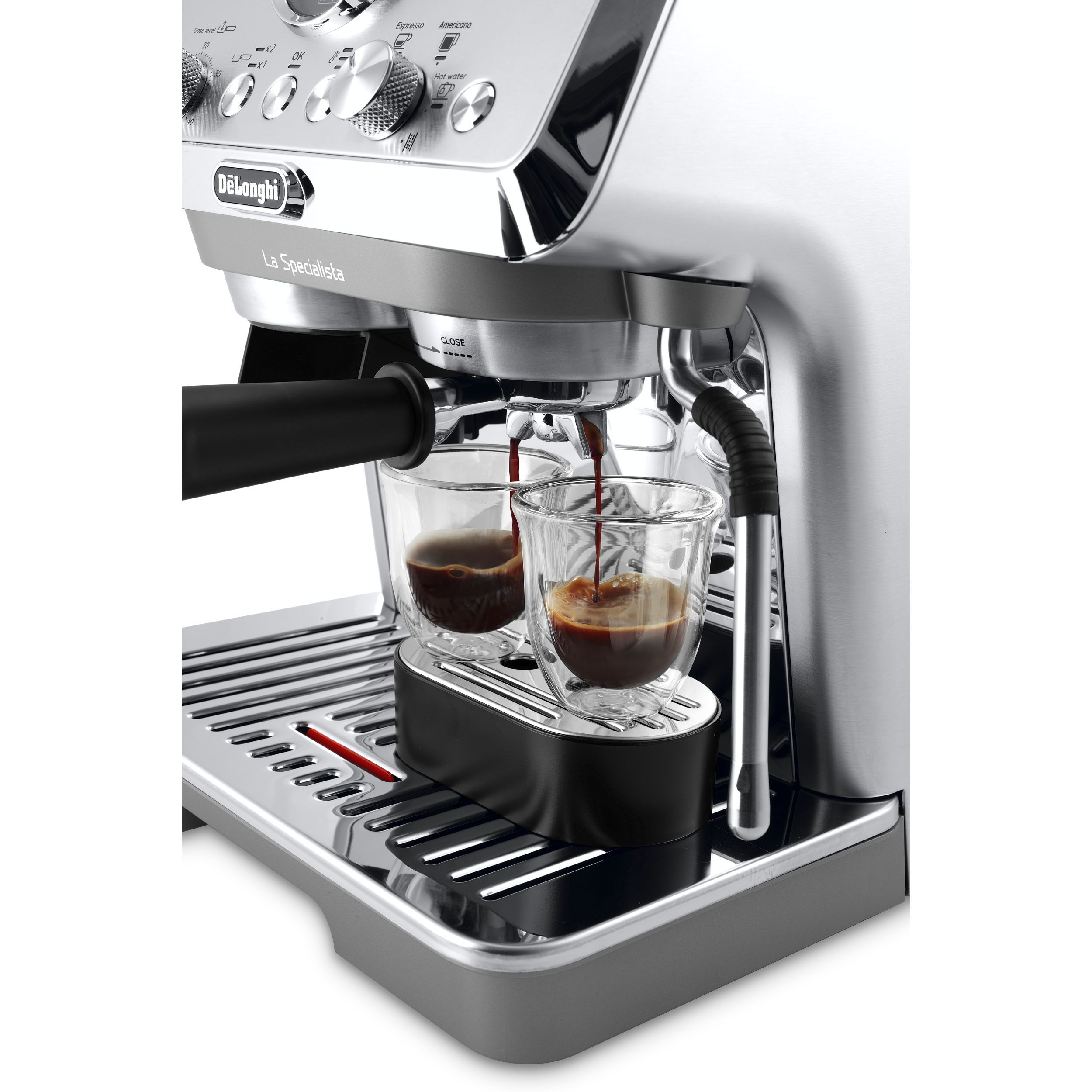 Sătui de pete sau stropire inutilă? Utilizați grătarul integrat pentru ceștile de espresso, astfel puteți evita bătăi de cap inutile, totul realizându-se rapid, simplu și eficient. Grătarul poate fi ridicat la loc când nevoia o cere.