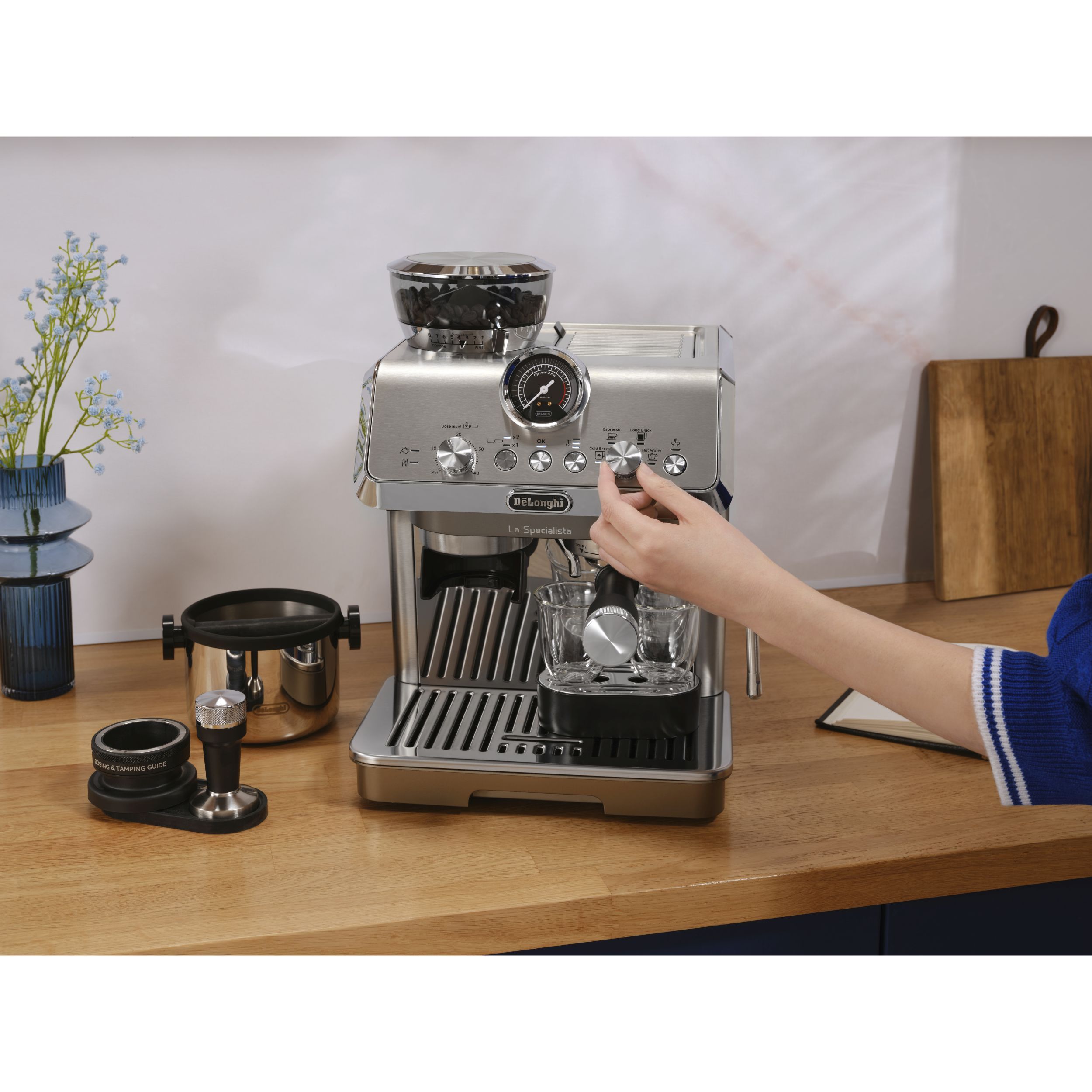 • Trăiește experiența barista la tine acasă, folosind kitul complet de accesorii, inclusiv ghidul de dozare și de presare a pudrei de cafea.