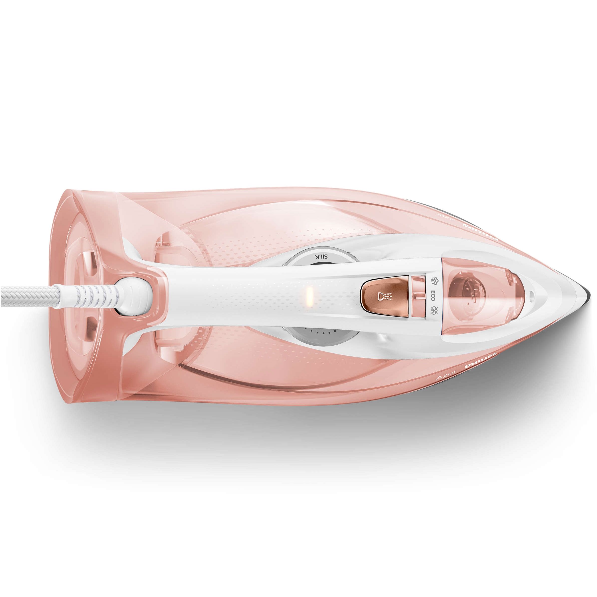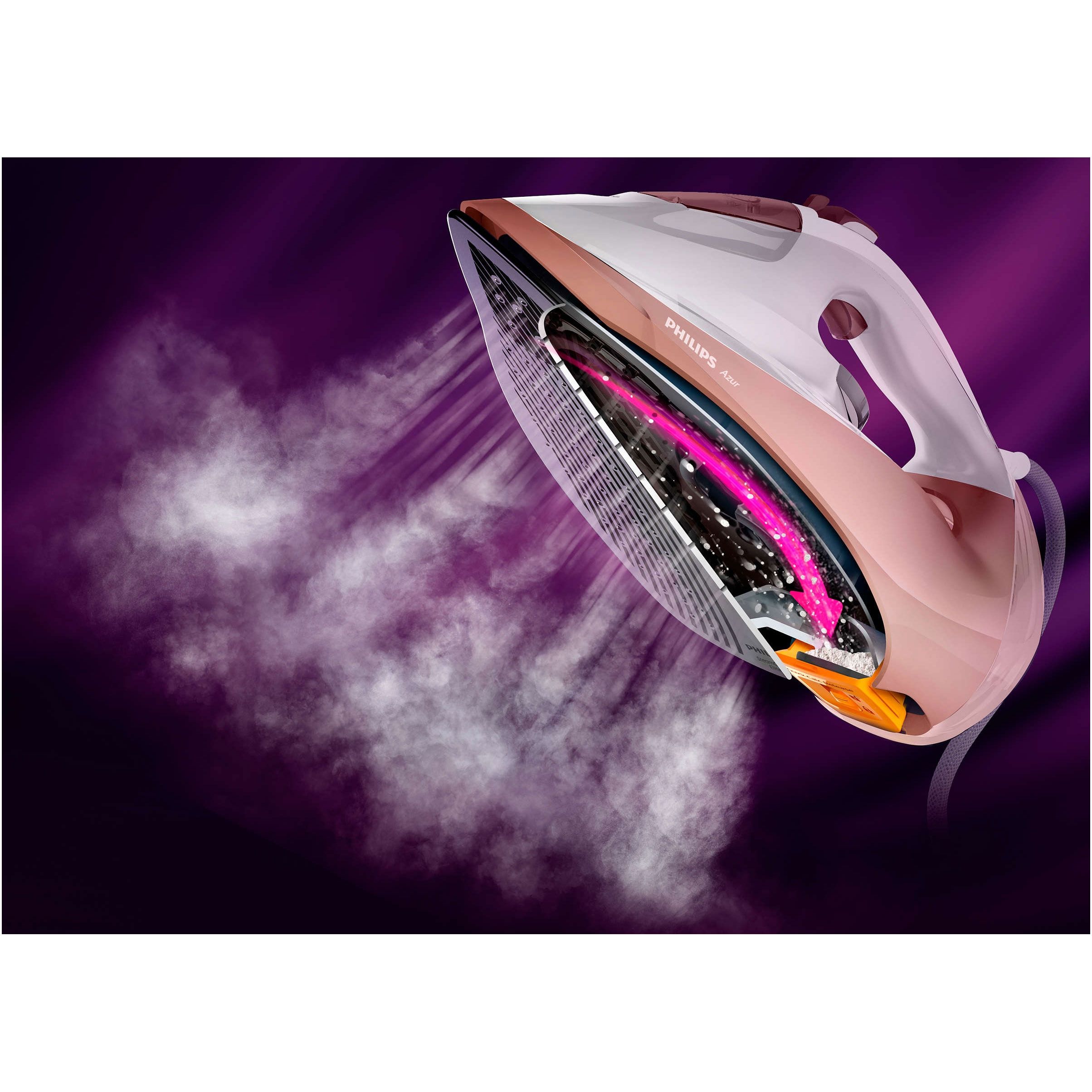 Debit de abur de până la 55 g/min. pentru îndepărtarea mai rapidă a cutelor. Graţie debitului de abur puternic şi constant, în ţesătură pătrunde cu până la 50% mai mult abur pentru netezirea mai rapidă a cutelor.
