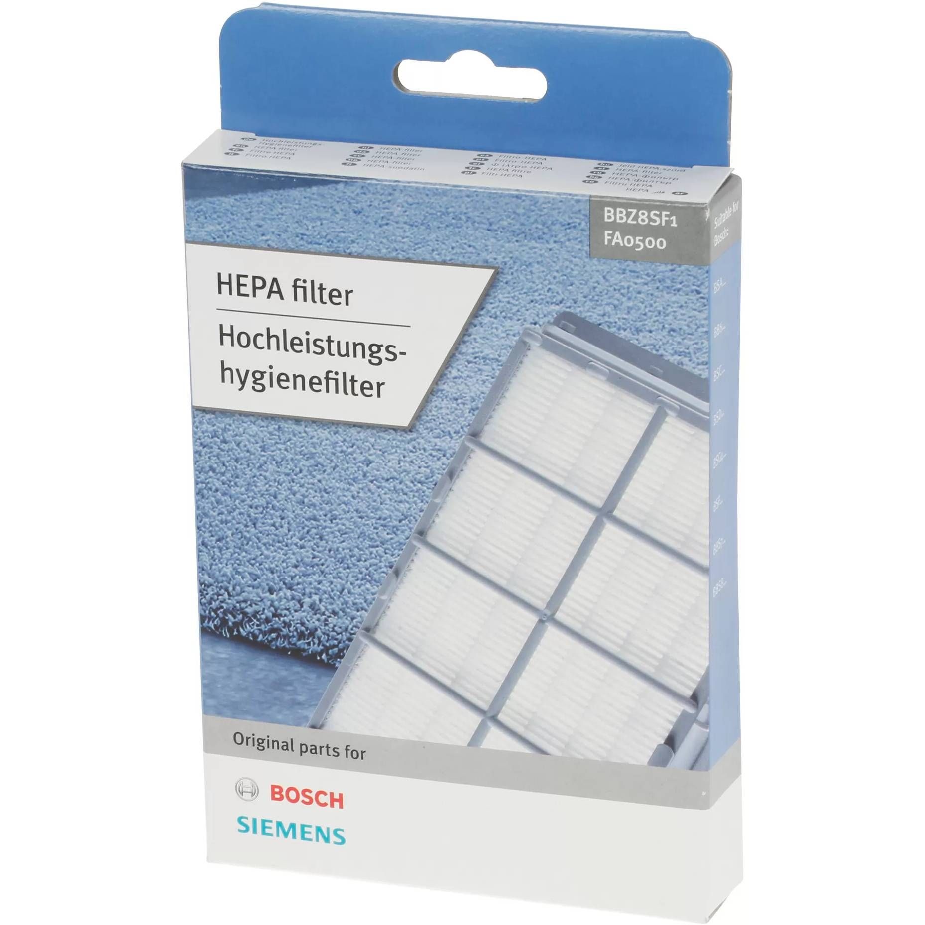 Resigilat Filtru igienic HEPA de înaltă performanță BOSCH BBZ8SF1 - 00578733, Recomandat persoanelor care suferă de alergii, Lavabil, Previne eliberarea de particule mici, bacterii sau alergeni în aerul evacuat (ID 7354)