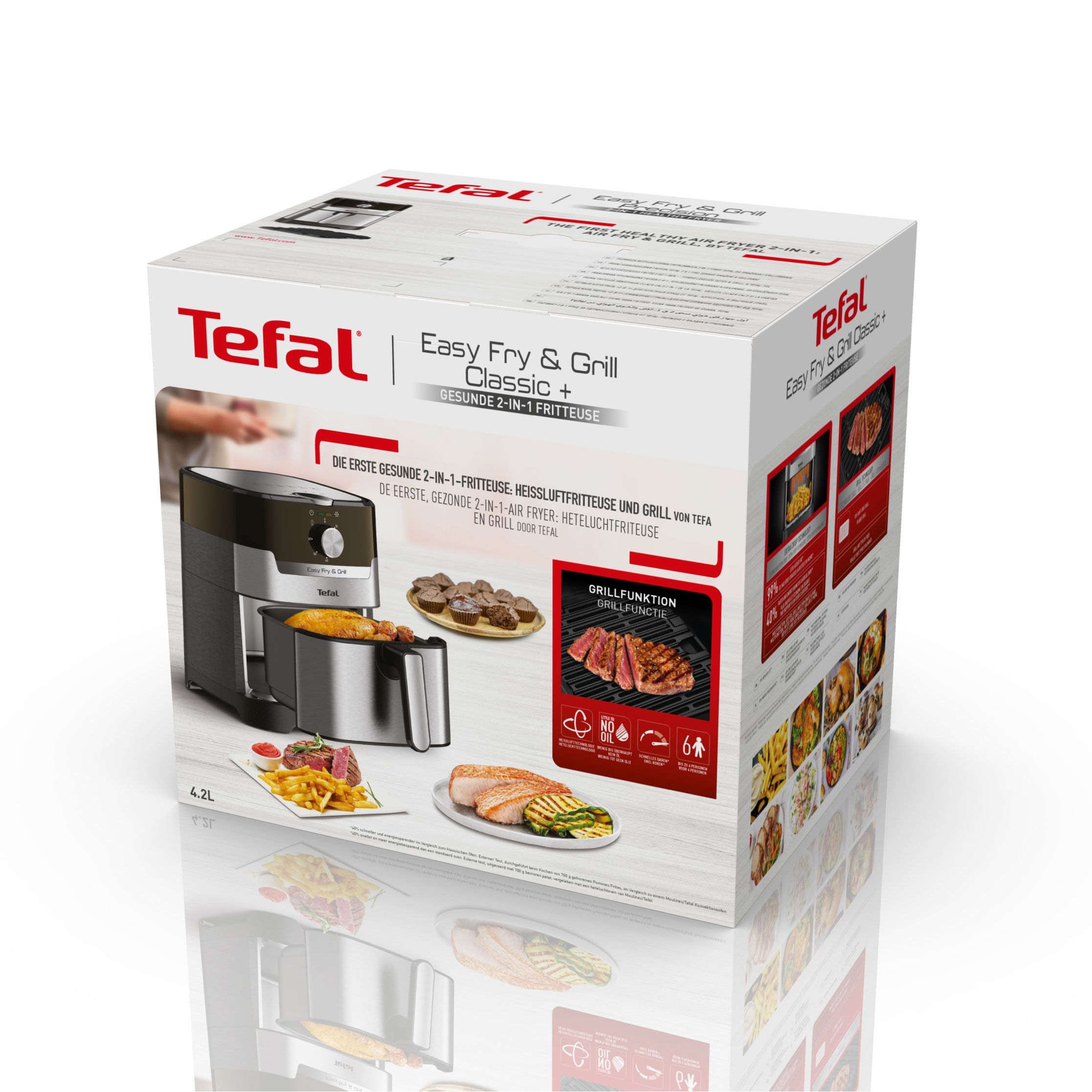 Prima friteuză 2 în 1 pentru preparate sănătoase de la Tefal Savurează rețetele tale favorite preparate într-un mod sănătos datorită aparatului 2 în 1 Tefal Easy Fry & Grill, ce combină beneficiile unei friteuze cu aer cald cu cele ale unui grătar. Aparatul garantează rezultate rapide, cu un consum redus de energie - alternativa perfectă pentru cuptorul clasic.