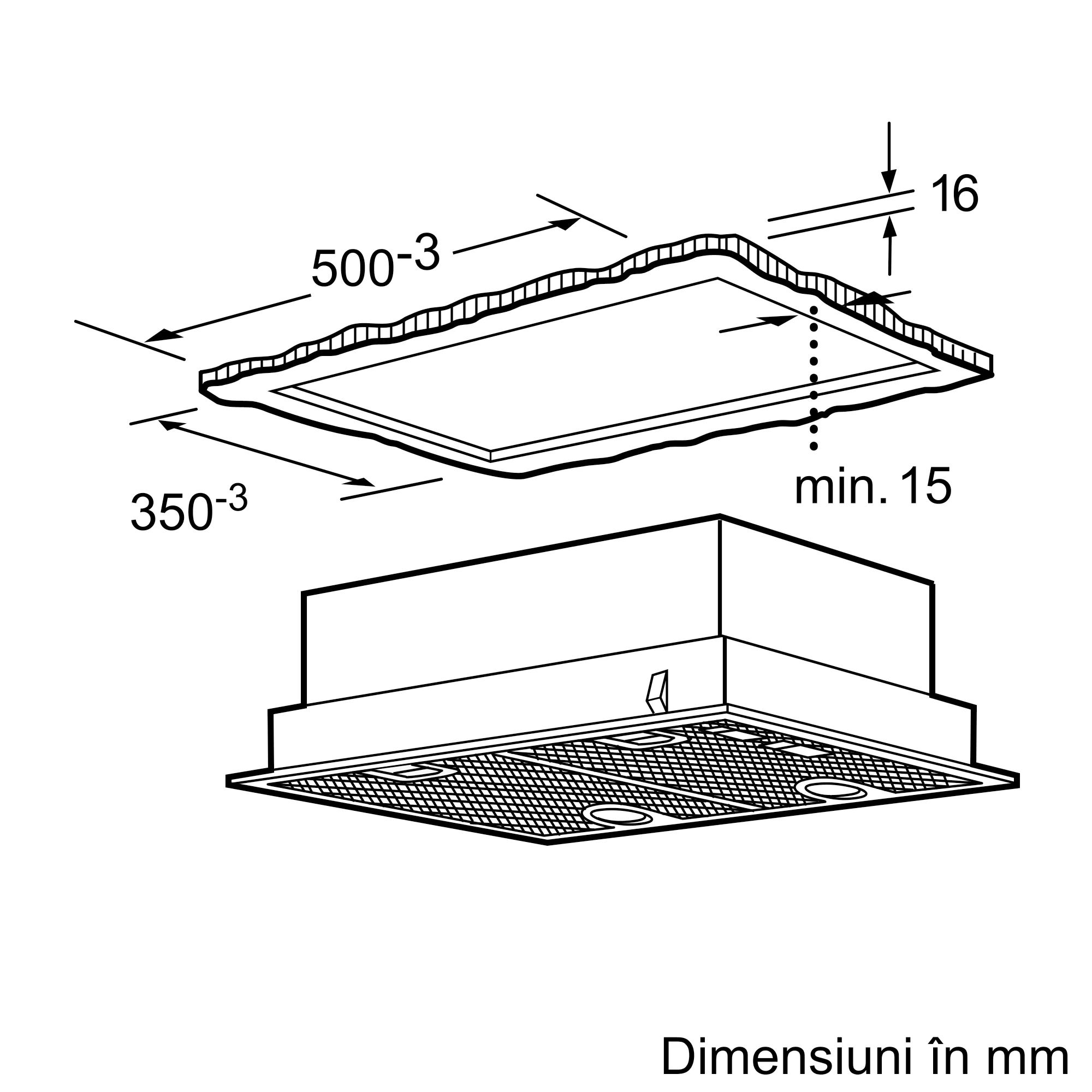 - „Vă rugăm sa consultați dimensiunile specificate în schița de instalare”