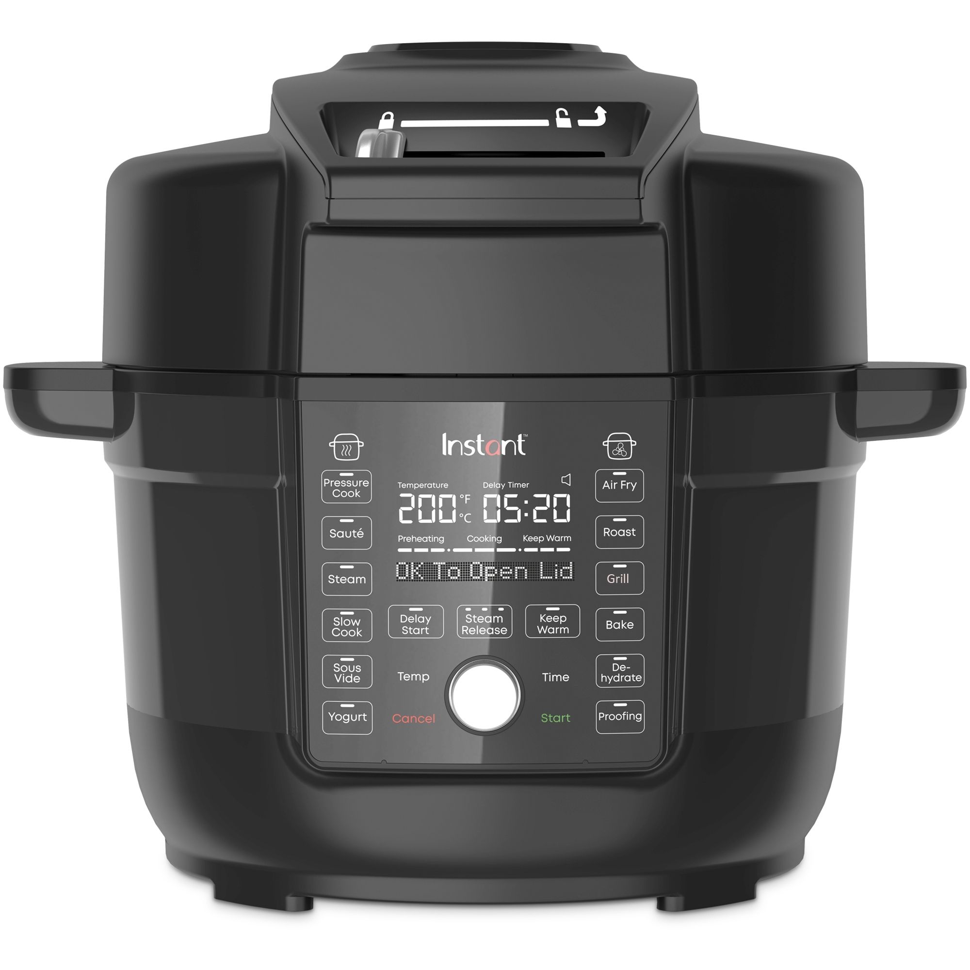 Duo Crisp cu Ultimate Lid este simplu de utilizat datorită afișajului LCD mare care vă ghidează prin programele de gătit și vă permite chiar să știți când să deschideți și să închideți capacul.