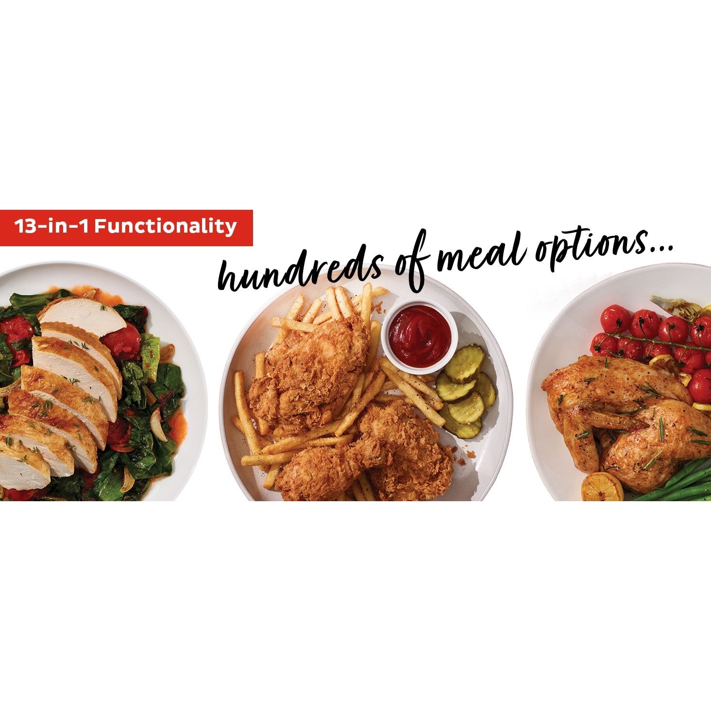 Este primul aparat de gătit combinat cu un singur capac care combină funcțiile de gătit uscat de prăjire cu aer, grătar, prăjire, coacere, deshidratare și preparare a probelor, cu funcții inteligente de gătit umed: gătit sub presiune, sous vide, abur, gătit lent, aparat de făcut iaurt și tigaie pentru sărituri.