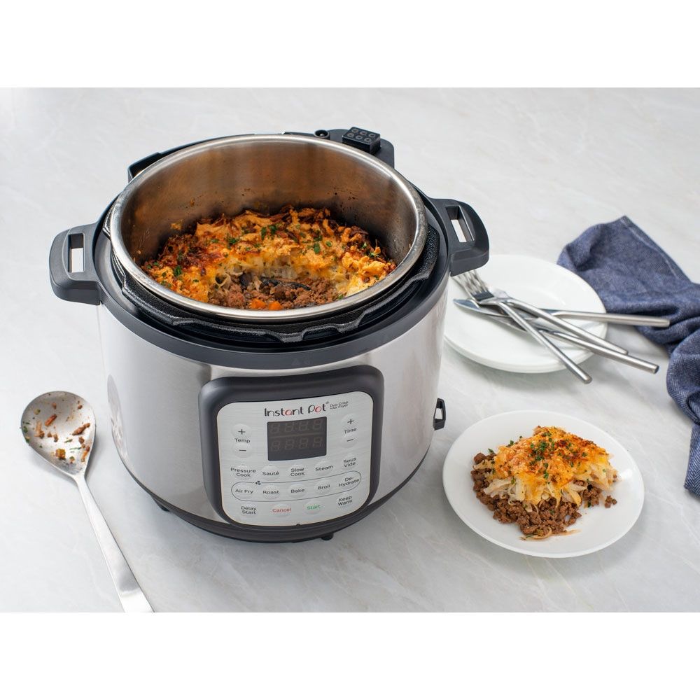 Faceți cunoștință cu aparatul revoluționar Instant Pot Duo Crisp + Air Fryer 8! Cu siguranță, cel mai bun aparat din bucătaria ta, acesta include functionalitatea a-11-aparate într-unul singur! Cu ajutorul lui, puteți găsi tot ce puteți folosi cu ajutorul unui multicooker. În plus este nevoie să schimbați doar program pentru a transforma multicooker-ul tău într-o friteuza cu aer cald, deasemenea are dispoziția un set complet de tehnici noi de gătit rapid, disponibil atingerea unui singur buton!