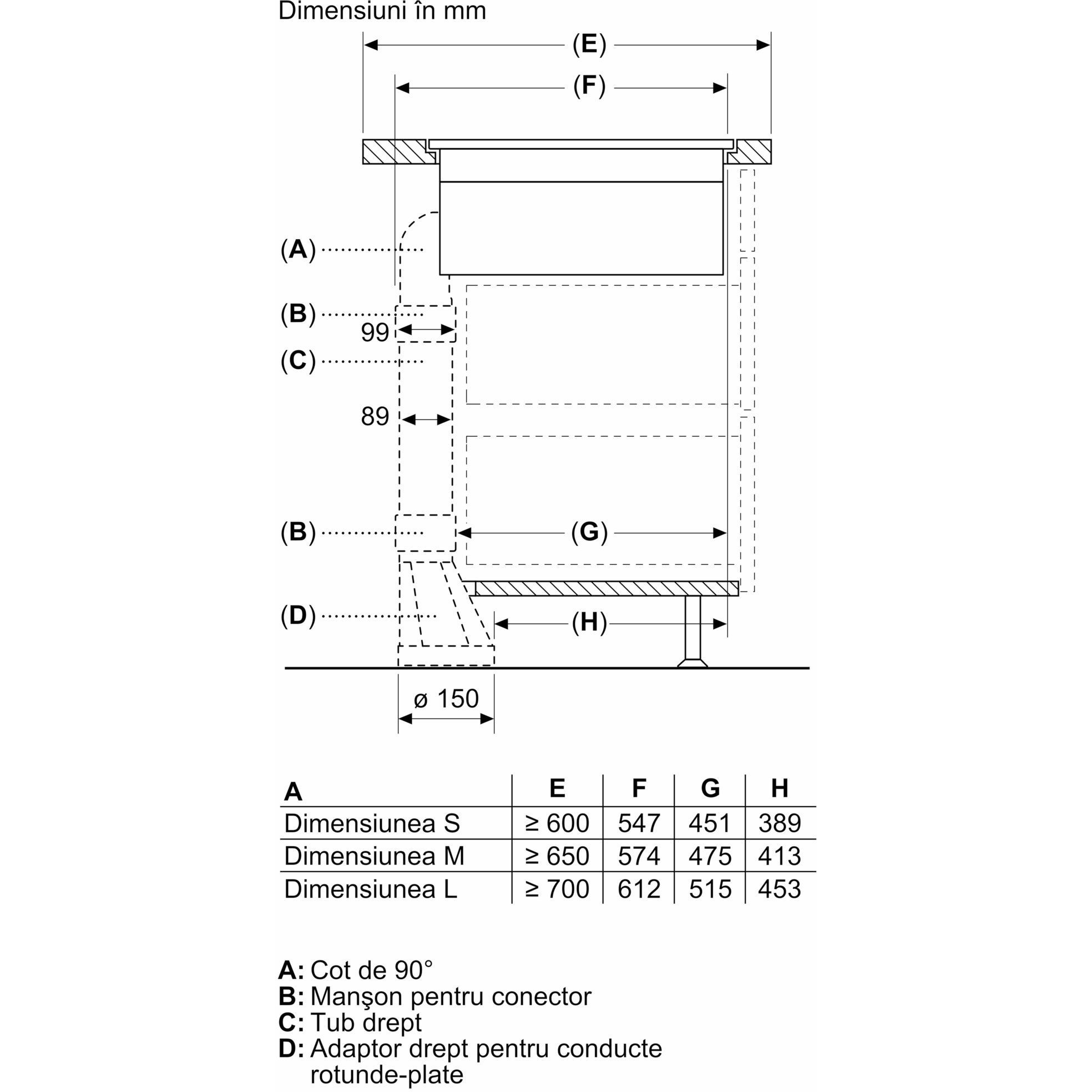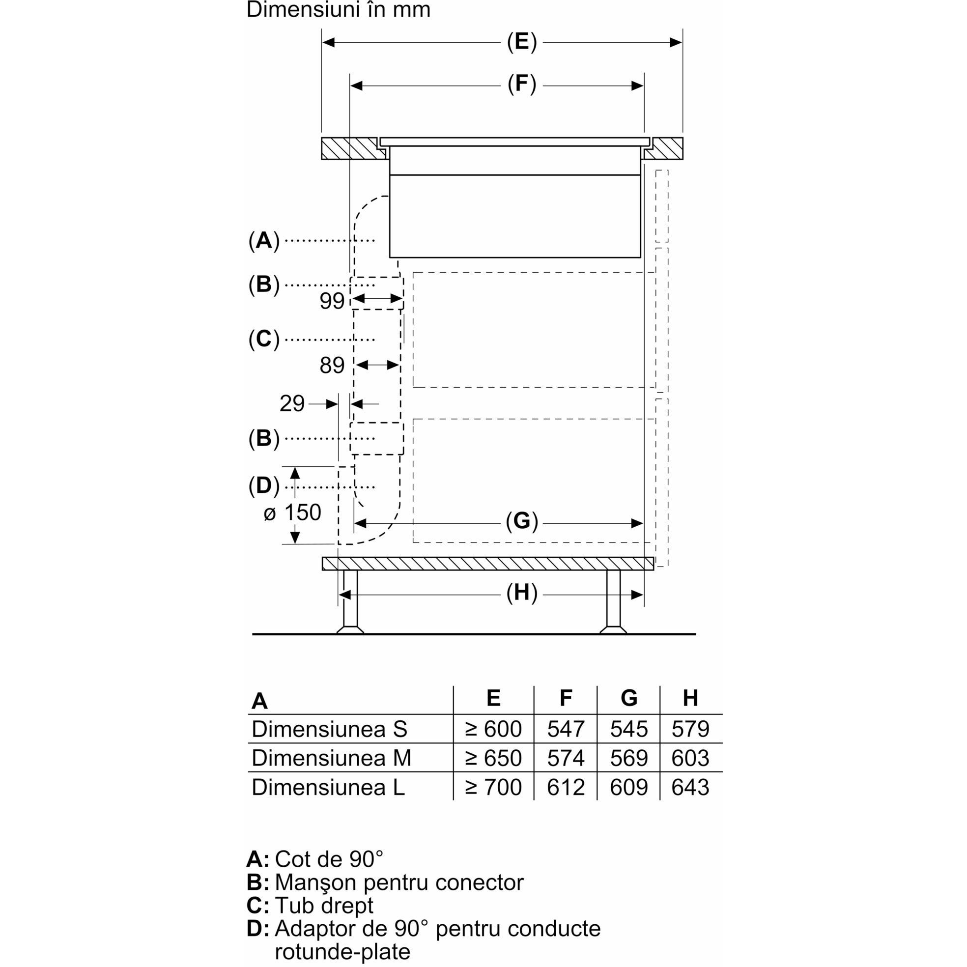 - HEZ9VDKR0 pentru instalare în regim recirculare cu tubulatură parțial conectată în blat cu adancimea ≥70cm și înălțimea max. 960 mm.