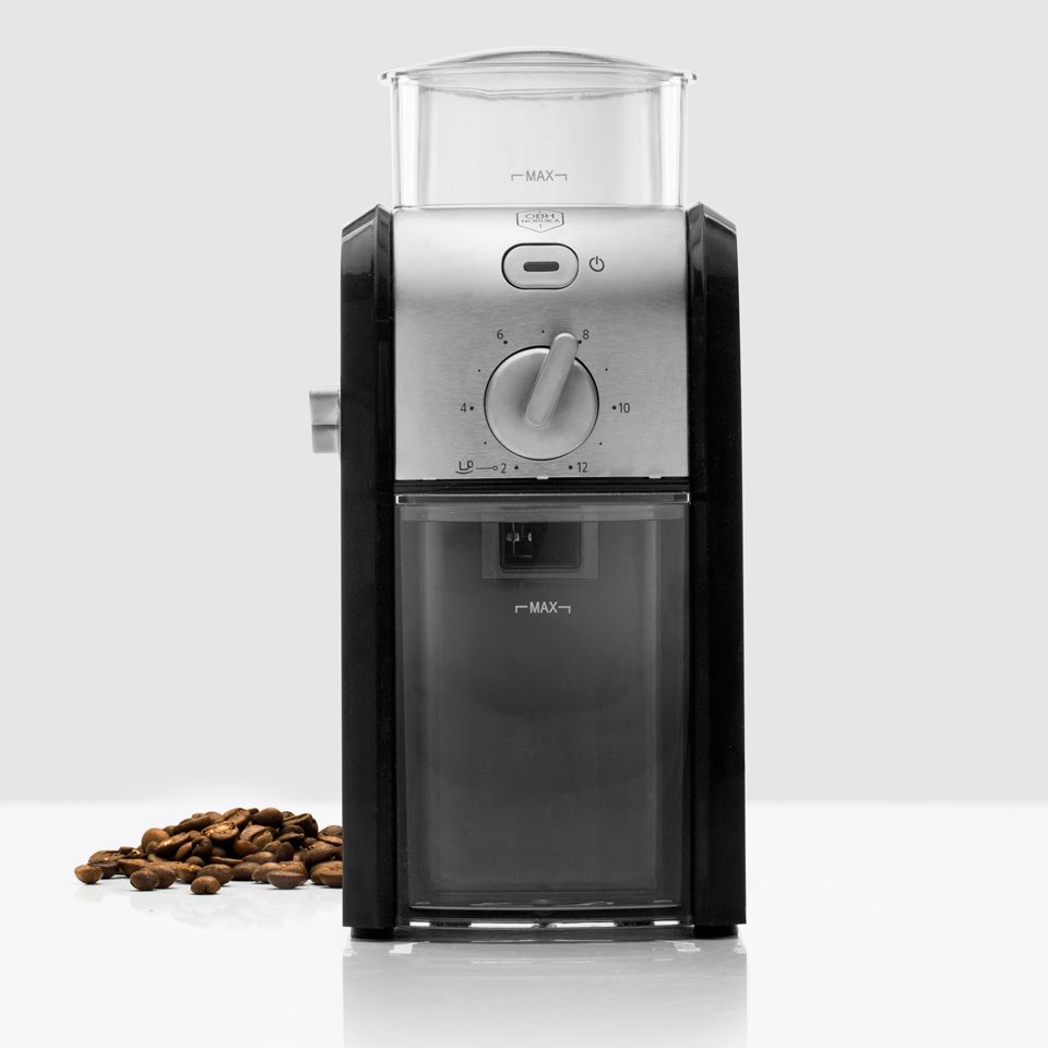 Râșnița este echipată cu un recipient cu capac pentru boabe de cafea de 200 g pentru a păstra prospețimea boabelor de cafea și a obține un rezultat final perfect.
