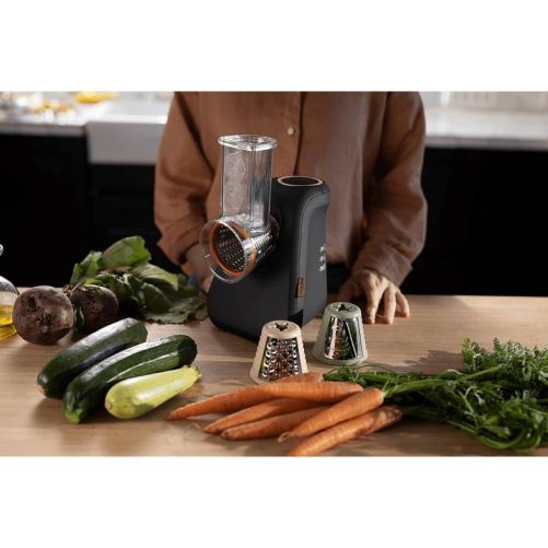 Aparat 3 în 1 Descoperă aparatul ce feliază, toacă și rade perfect orice ingredient! Ideal pentru a prepară salate delicioase și garnituri irezistibile precum crochete din legume și multe altele. |