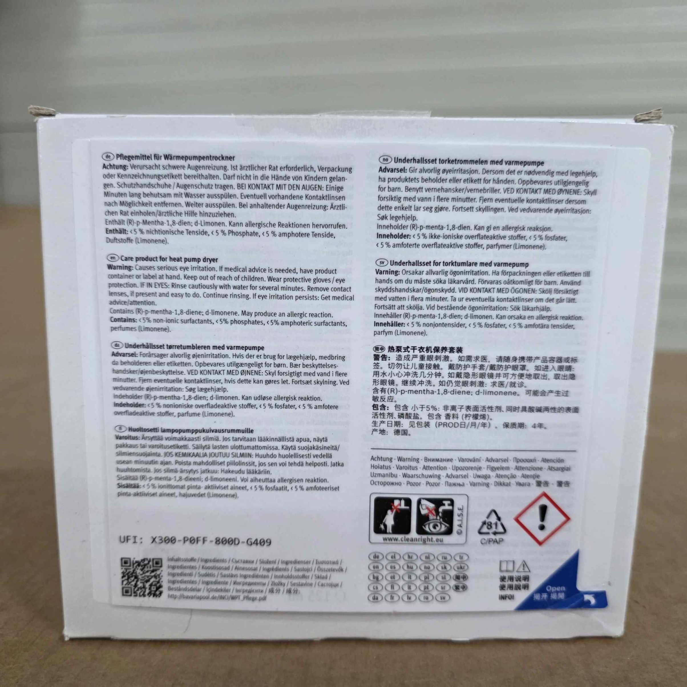 Atenţie: Provoacă o iritare gravă a ochilor. Conţine (R)-p-mentha-1,8-dienă; d-limonen. Poate provoca o reacţie alergică. Dacă este necesară consultarea medicului, ţineţi la îndemână recipientul sau eticheta produsului. A nu se lăsa la îndemâna copiilor. Purtaţi mănuşi de protecţie/echipament de protecţie a ochilor. ÎN CAZ DE CONTACT CU OCHII: Clătiţi cu atenţie cu apă timp de mai multe minute. Scoateţi lentilele de contact, dacă este cazul şi dacă acest lucru se poate face cu uşurinţă. Continuaţi să clătiţi. Dacă iritarea ochilor persistă: consultaţi medicul.