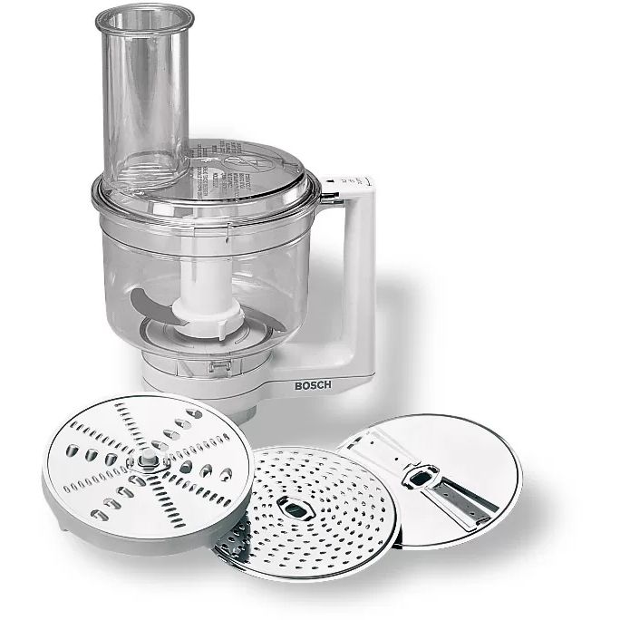 Procesare potrivită pentru fiecare legumă: (1) disc reversibil tăiere felii groase/subțiri; (2) disc reversibil răzuitoare grosier/fin; (3) disc pentru răzuit fin. Cu cele 3 discuri din oțel inoxidabil ești perfect echipat pentru orice delicatesă vegetariană și poți procesa ingrediente in cel mai scurt timp.