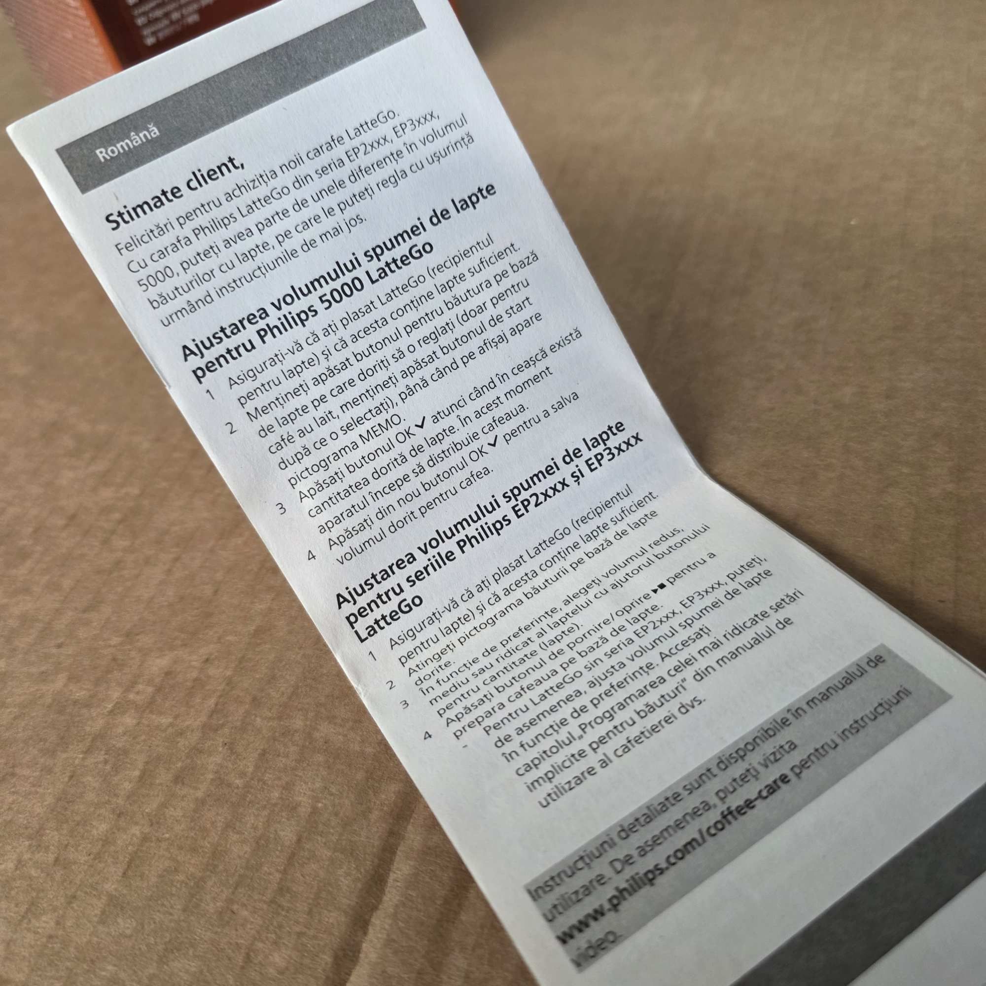 Ambele piese ale sistemului LatteGo pot fi curăţate în maşina de spălat vase. Pentru confortul tău, poţi pune sistemul LatteGo în maşina de spălat vase. Aceasta va economisi timp şi va asigura o curăţare igienică.
